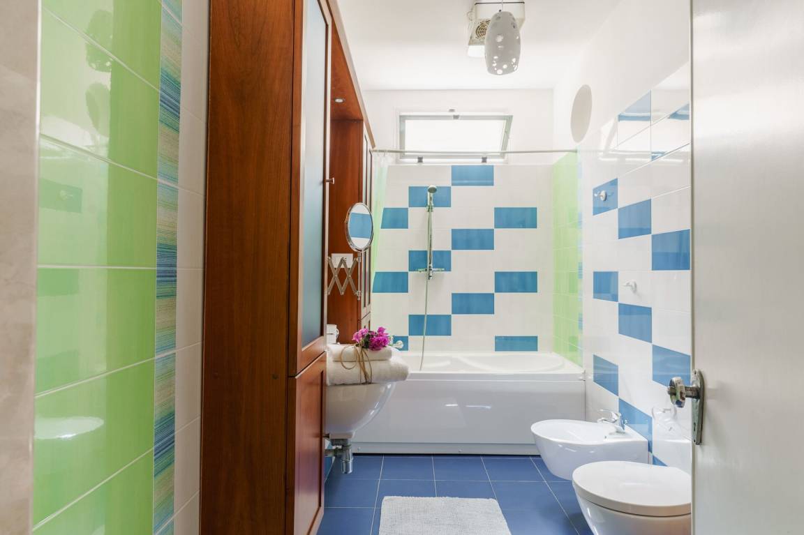 Badezimmer 2: Waschbecken, WC, Bidet, Badewanne.