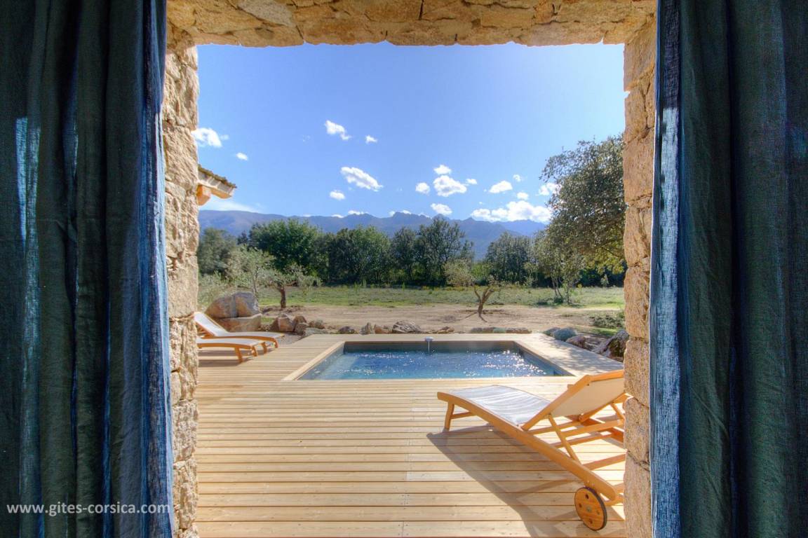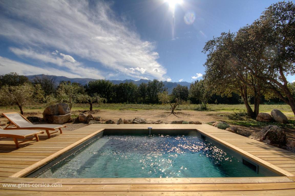 - Privater 4 x 4 Meter großer Swimmingpool (1,40 Meter tief), der während des Mietzeitraums beheizt und mit einer Alarmanlage gesichert ist. Der Swimmingpool steht ausschließlich den Gästen zur Verfügung.