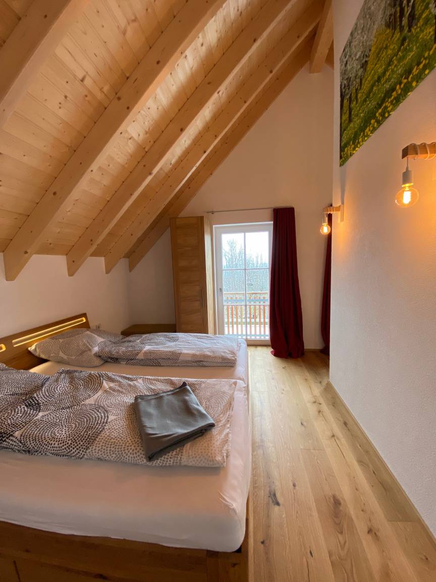 Die Ferienwohnung in unserem Neubau liegt in herrlicher Landschaft, hoch in den Kronen der Bäume unserer Apfelbaumwiese. Wir haben die Wohnung liebevoll ausgestattet, genauso wie wir es uns in einer Ferienwohnung auch wünschen. Die Raumhöhe, die Holzarchitektur und die Vollholzmöbel sind die besten Voraussetzungen für einen qualitätvollen Wohlfühlaufenthalt.