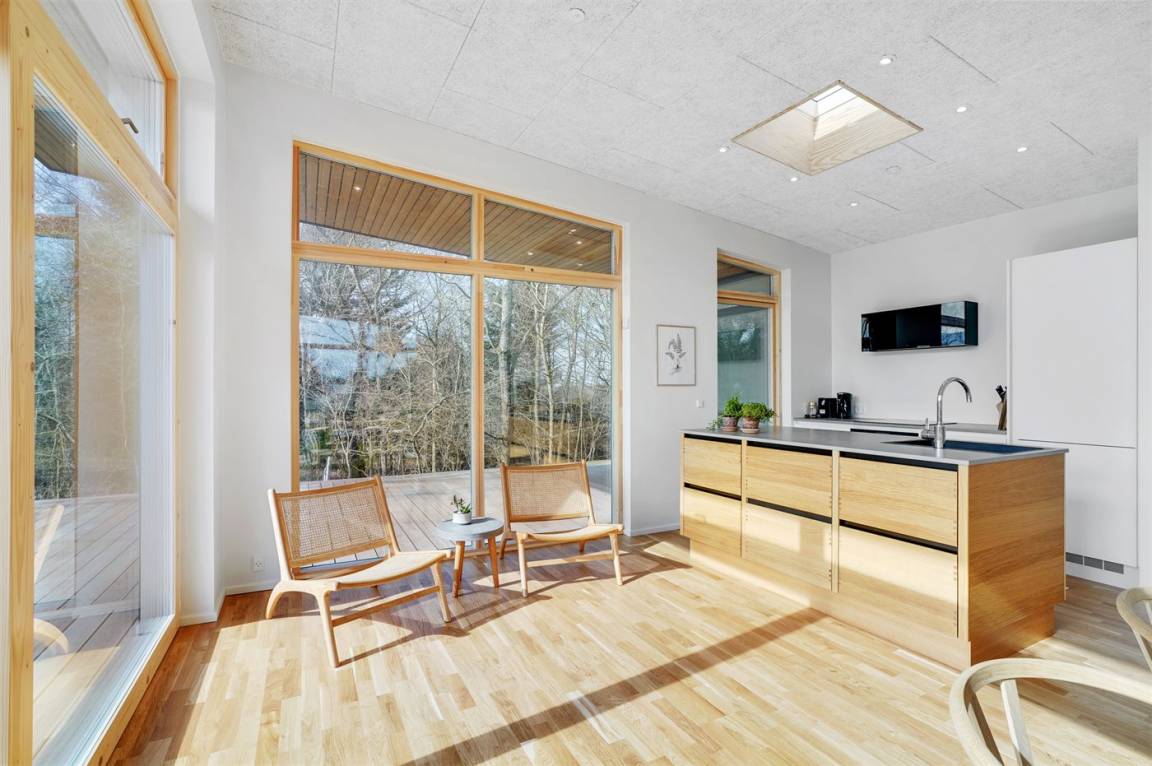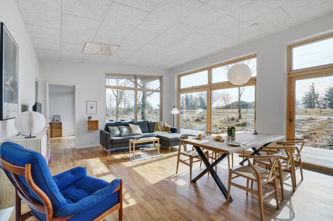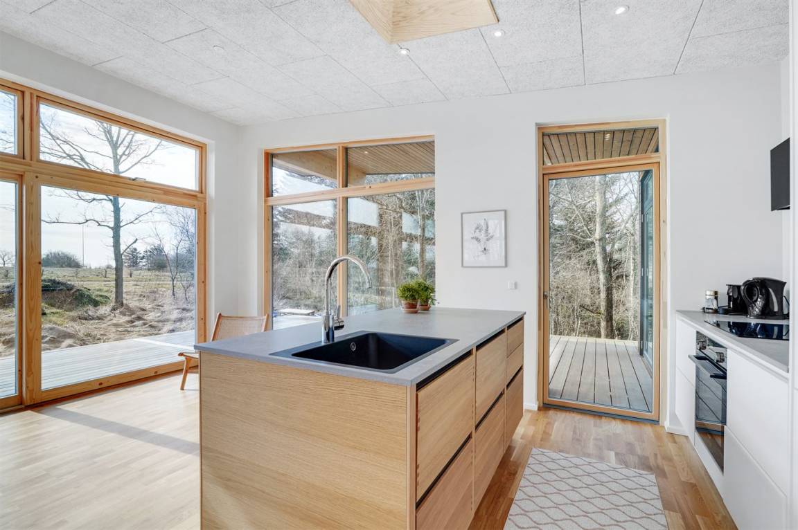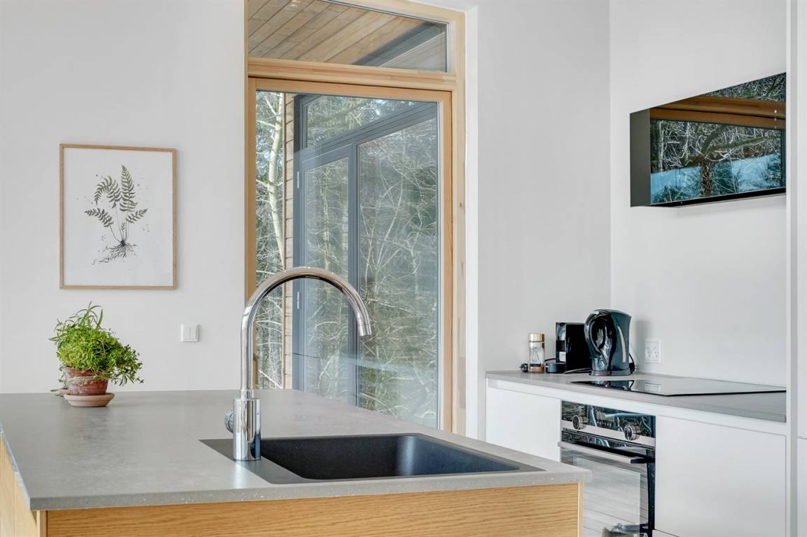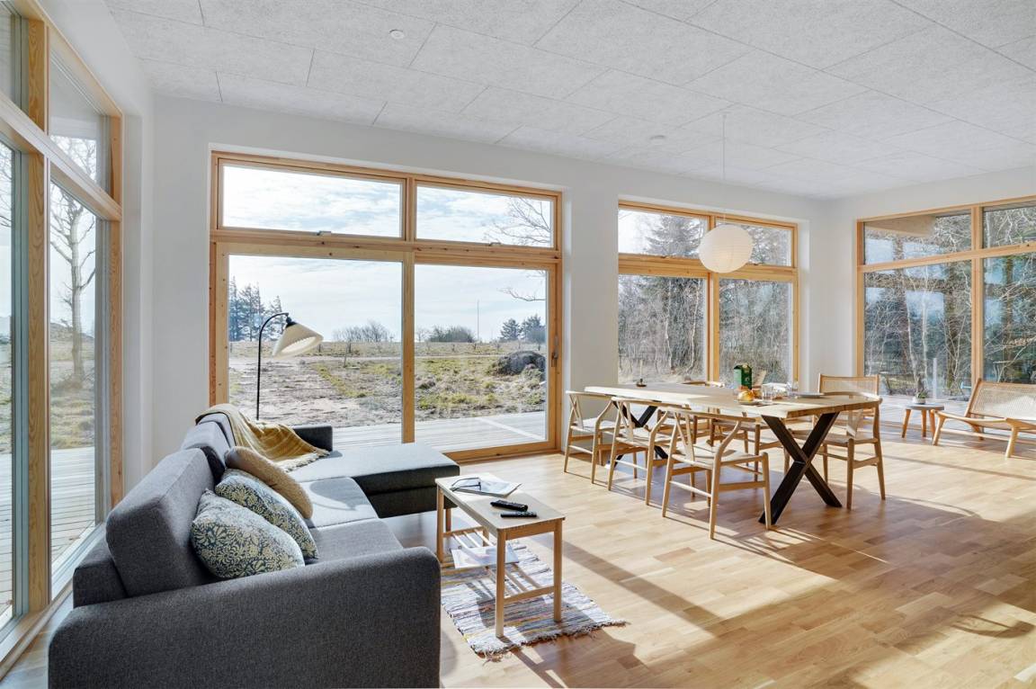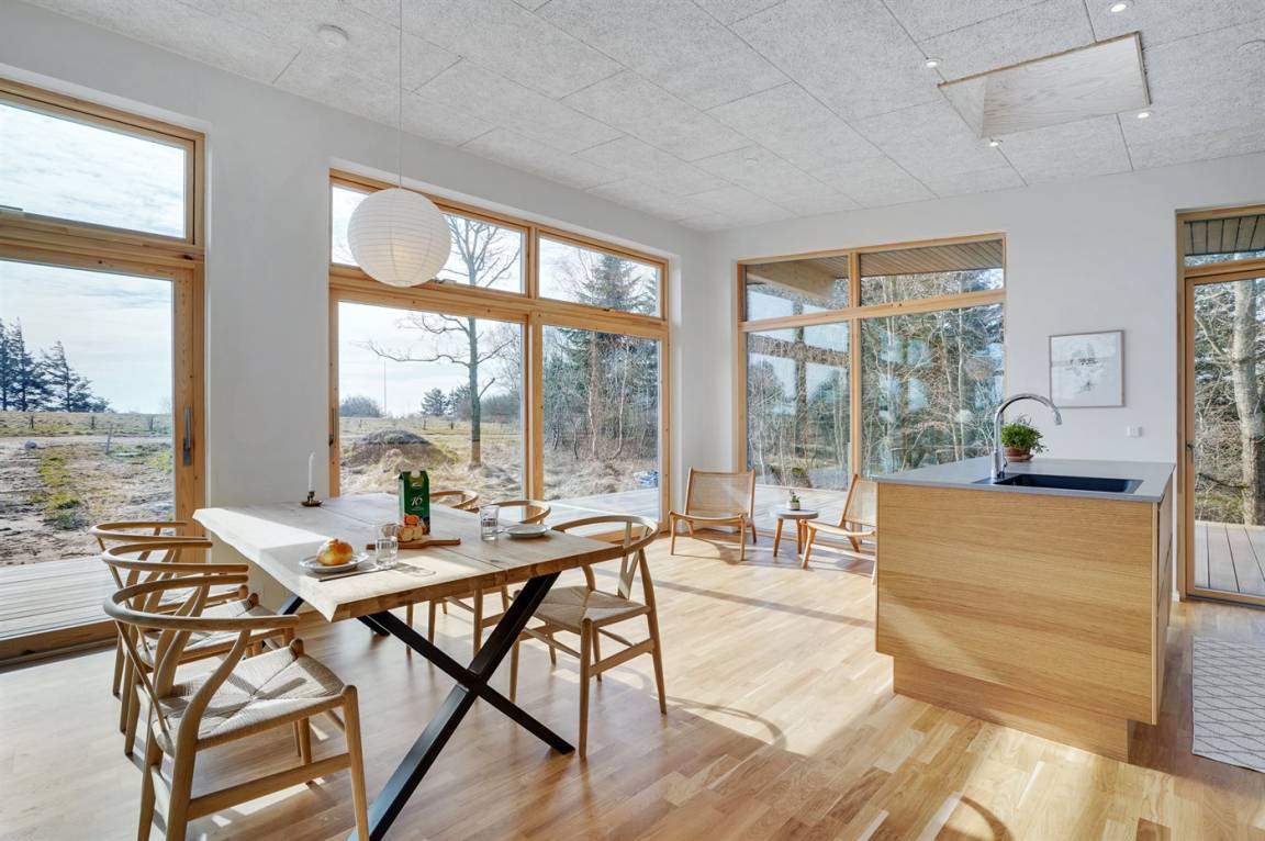 In diesem ganz neuen Ferienhaus, 2022 gebaut, wurde ganz besonders auf das Detail und auf die Qualität geachtet. Die großen Fenster und Decken bis zum First tragen dazu bei, daß Sie die Natur intensiv und hautnah spüren.