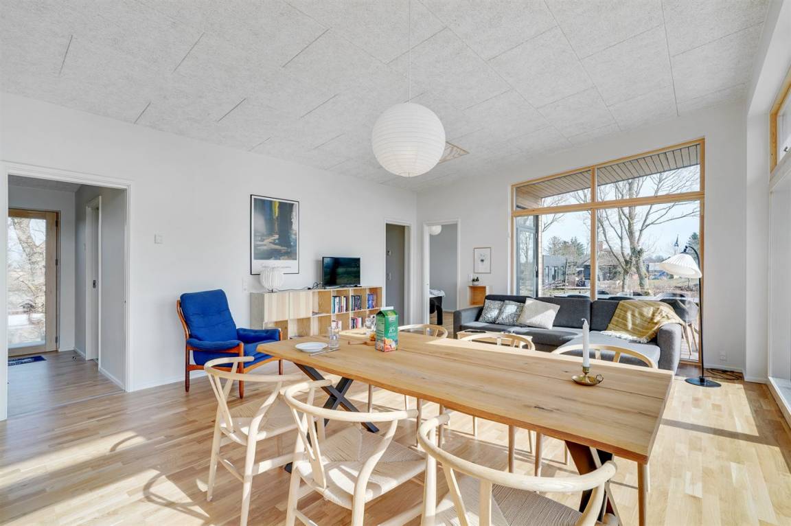 DraußenDie Ferienunterkunft liegt auf einem 2832 m² großen Naturgrundstück. Die Entfernung zum Fjord beträgt 500 m. Es gibt einen Badesteg in der Nähe. Die nächste Einkaufsmöglichkeit liegt 2500 m entfernt. Es stehen sowohl offene als auch überdachte Terrassen zur Verfügung. Die Entfernung zu einem Spielplatz beträgt 800 m. Außensauna. Parkplatz auf dem Grundstück.