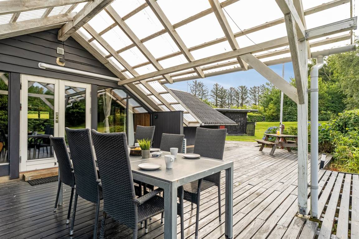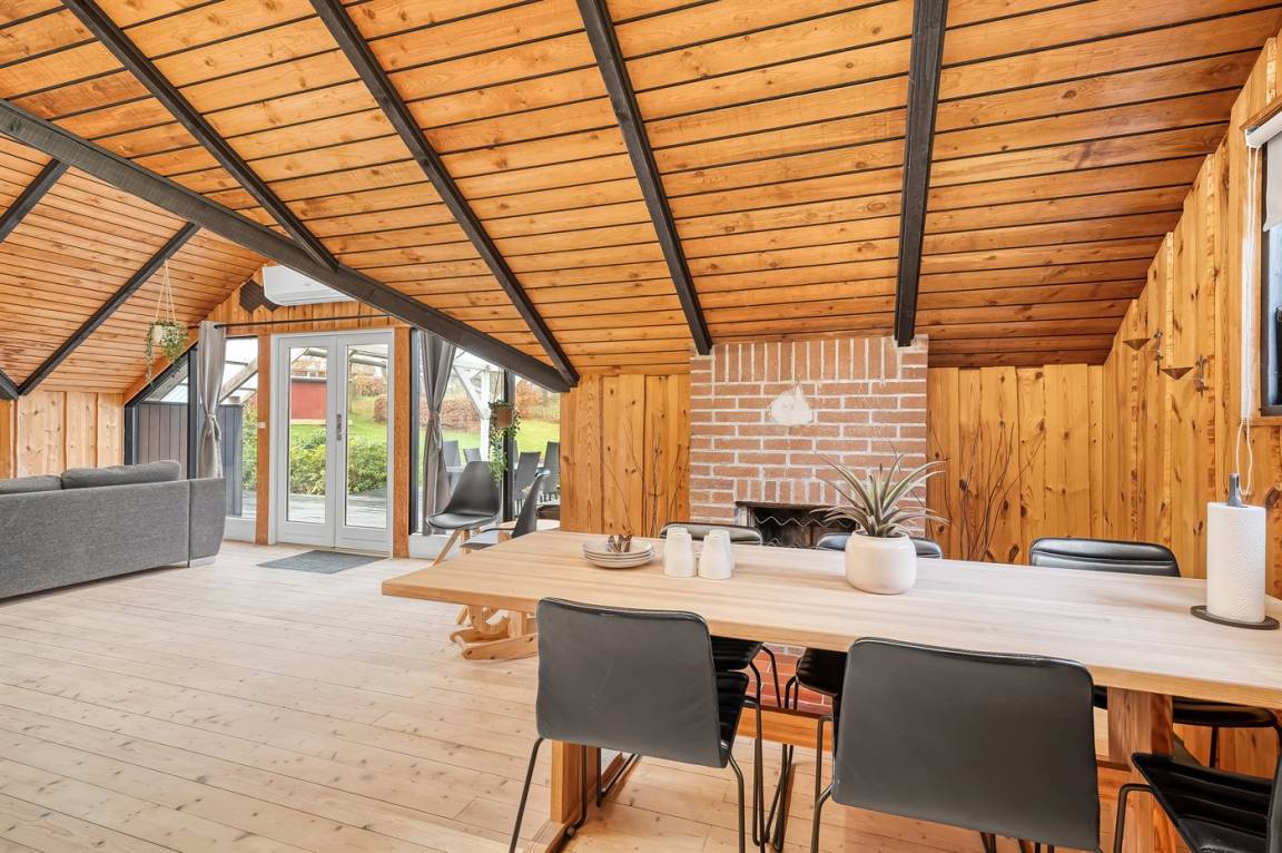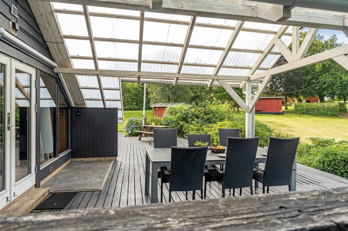 Das Haus wurde 2024, unter Rücksichtnahme auf das ursprüngliche Gebäude, renoviert. Von der überdachten Terrasse des Hauses aus hast du Ausblick über das große Grundstück, wo es reichlich Platz für Ballspiele und andere Aktvitäten im Freien gibt.