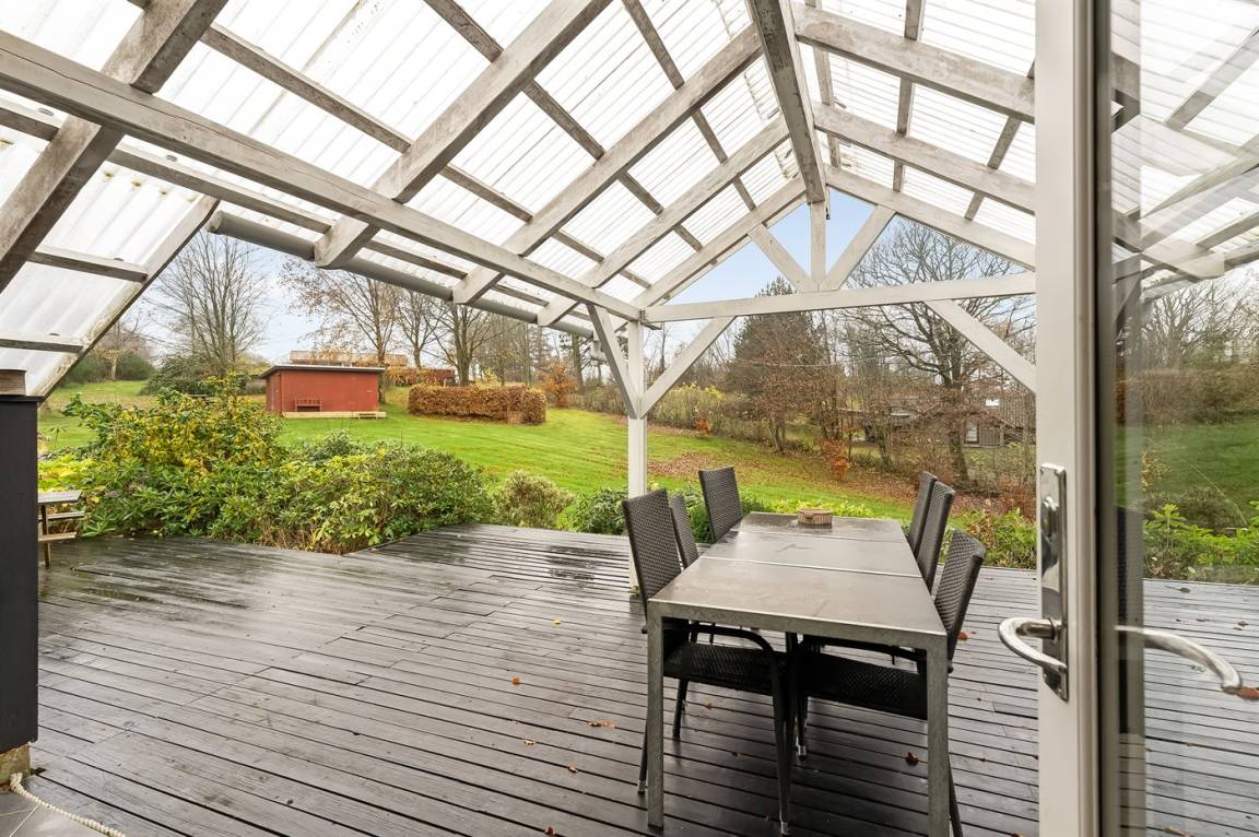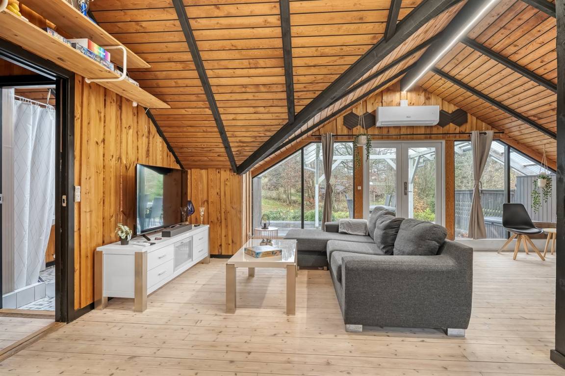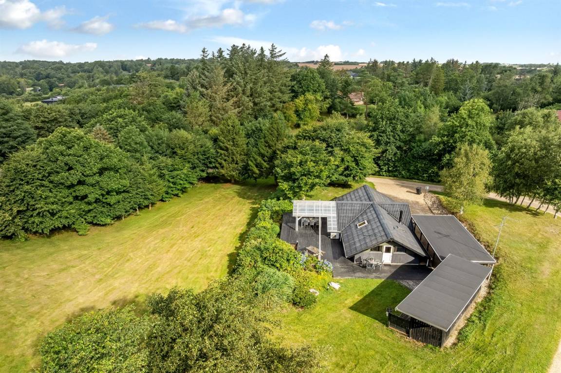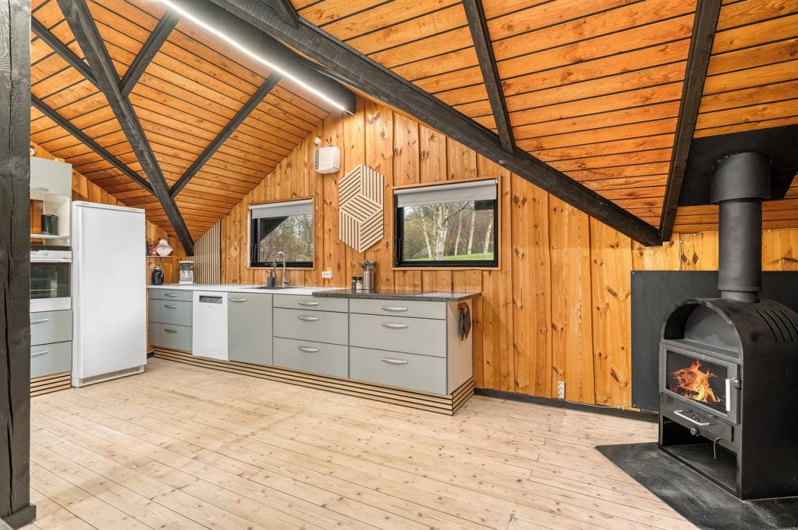 Das Haus wurde 2024, unter Rücksichtnahme auf das ursprüngliche Gebäude, renoviert. Von der überdachten Terrasse des Hauses aus hast du Ausblick über das große Grundstück, wo es reichlich Platz für Ballspiele und andere Aktvitäten im Freien gibt.