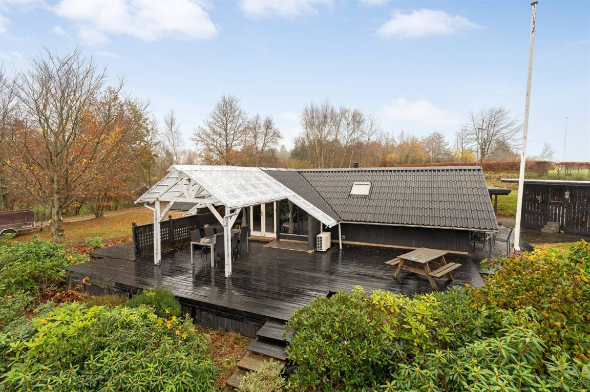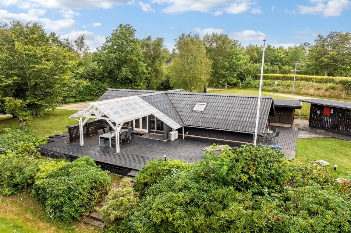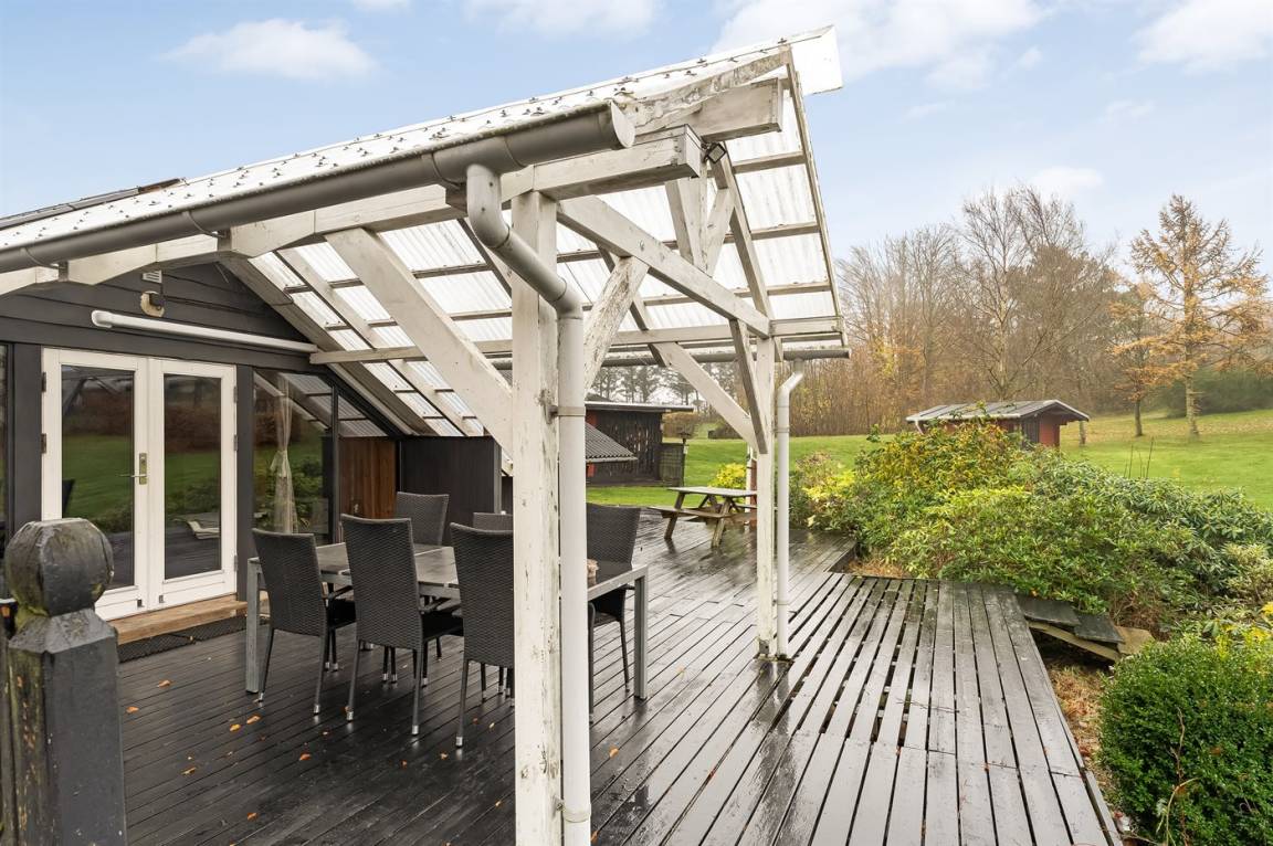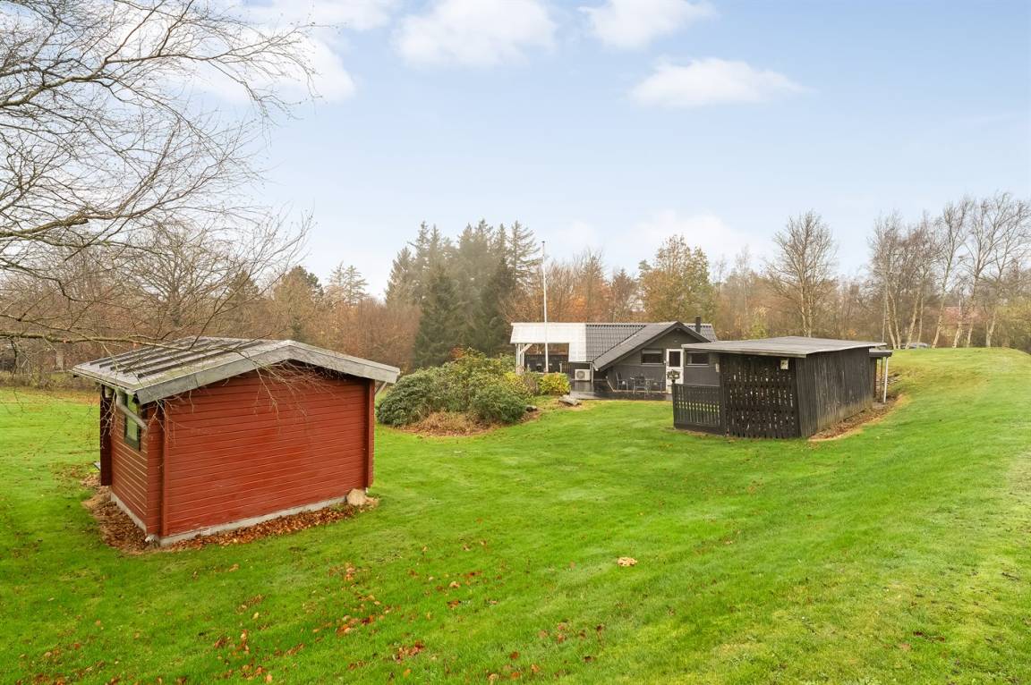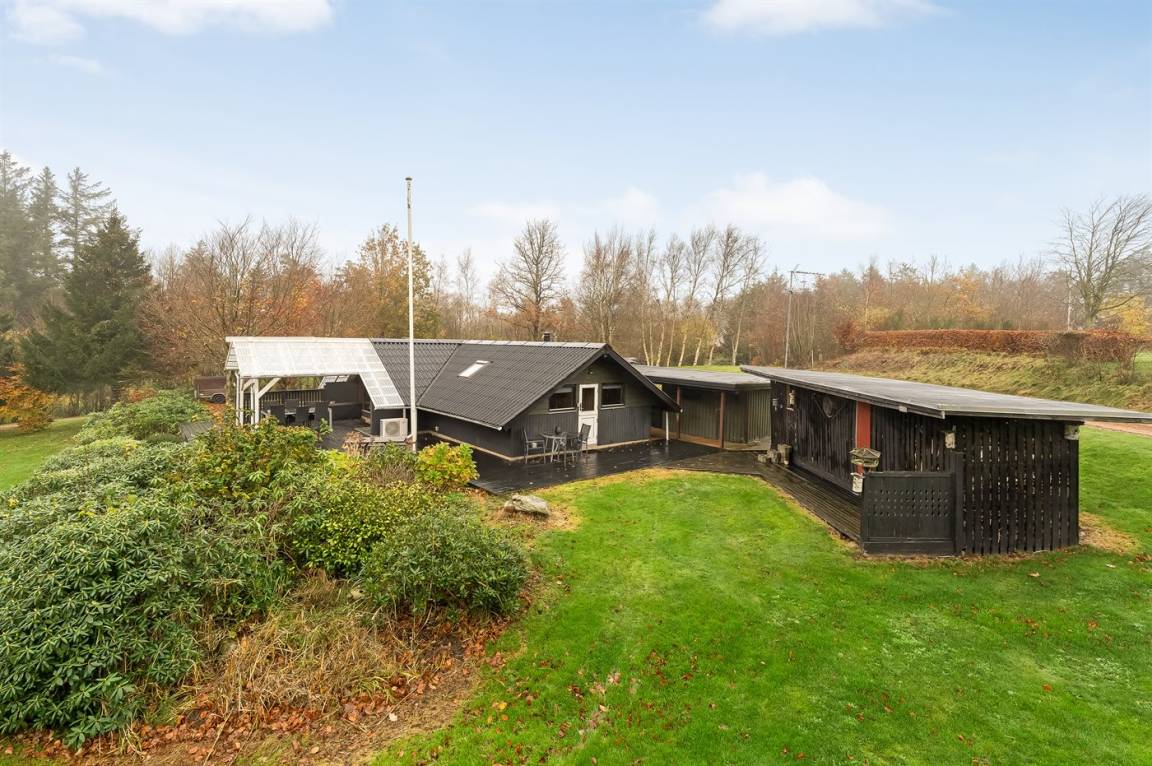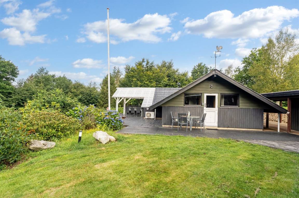 DraußenDie Ferienunterkunft liegt auf einem 2581 m² großen Naturgrundstück. Die Entfernung zum Meer beträgt 25000 m. Die Entfernung zum Fjord beträgt 500 m. Es gibt einen Badesteg in der Nähe. Die nächste Einkaufsmöglichkeit liegt 4500 m entfernt. In einem Abstand von 12000 m gibt es einen Golfplatz. Es steht ein offenes Terrassenareal zur Verfügung. Außerdem gibt es überdachte Terrasse. Geräteraum.Lagerfeuerstelle. Es steht ein Carport zur Verfügung. Parkplatz auf dem Grundstück.