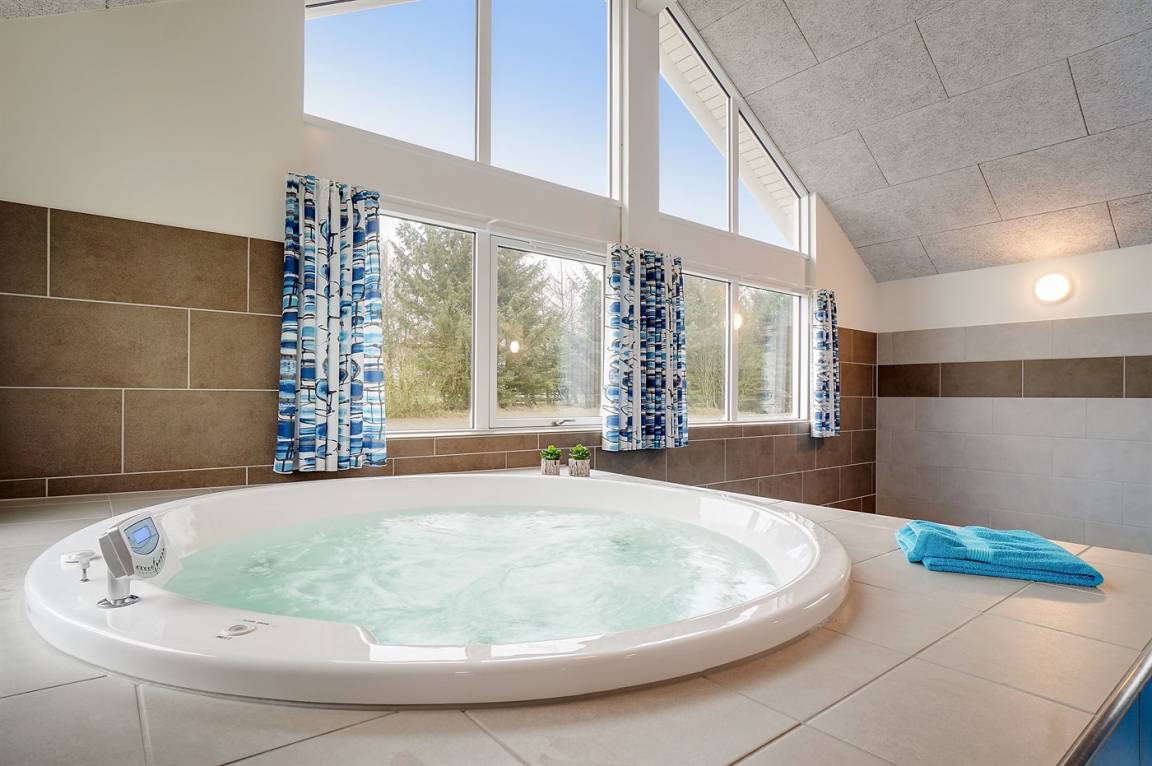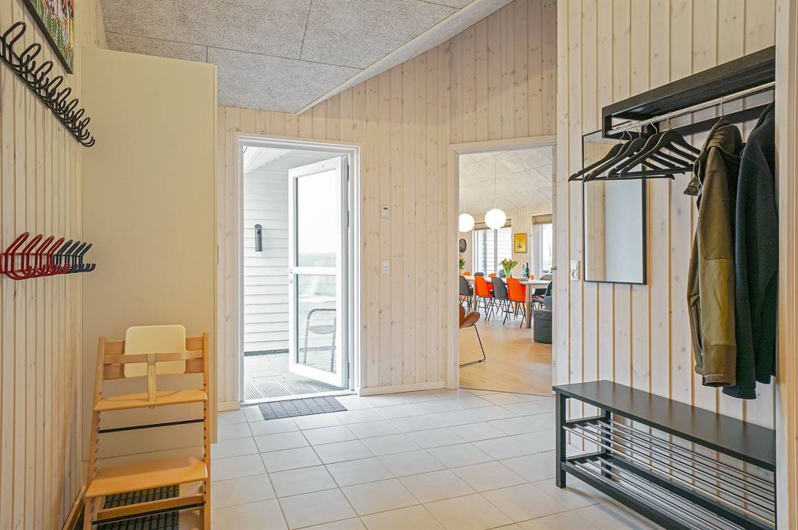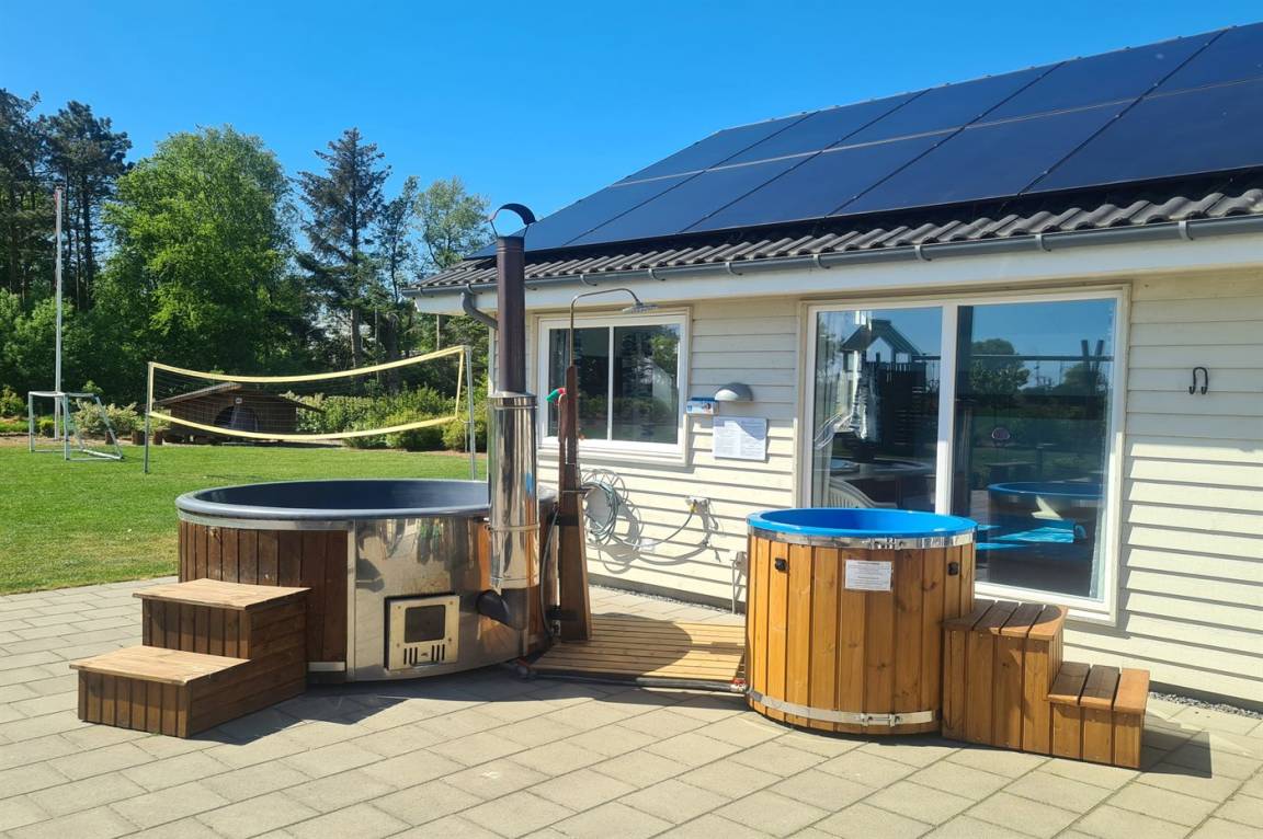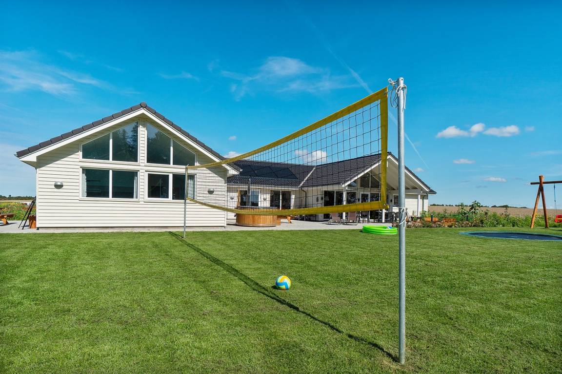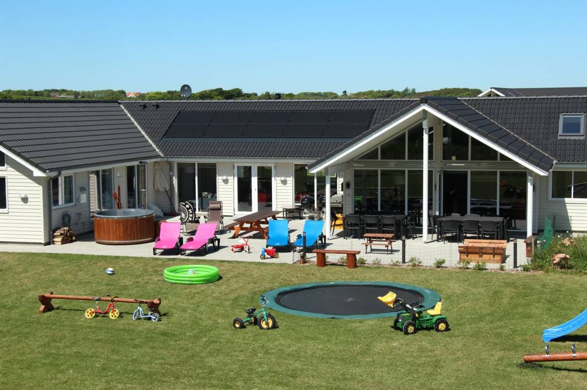 Wenn Sie auf der Suche nach einem großartigen Haus mit Swimmingpool für nicht weniger als 22–24 Personen mit einem großen Angebot für Indoor- und Outdoor-Aktivitäten in der Nähe der Badestrände des Limfjords sind, ist dieses Haus ganz bestimmt das Richtige für Sie. Das Haus verfügt über acht Schlafzimmer, die sich auf drei Bereiche mit eigenem Bad/Toilette verteilen, was für mehr Privatsphäre sorgt. Jedes Zimmer ist mit zwei Qualitätseinzelbetten ausgestattet, die zu einem Doppelbett zusammengesetzt werden können. Zudem befinden sich im großen offenen Obergeschoss sechs Betten und im kleinen offenen Obergeschoss zwei Matratzen. Die Schlafplätze in den offenen Obergeschossen eignen sich bestens für Kinder und Jugendliche. Außerdem gibt es im Unterschlupf eine Federkernmatratze für zwei Erwachsene oder drei Kinder. Alle Zimmer sind mit Verdunkelungsvorhängen ausgestattet. Auch an die Zugänglichkeit für Menschen mit Gehbehinderung und Rollstuhlfahrer ist gedacht: Die Eingangstür ist mit Rampen ausgestattet, es gibt keine Türschwellen und zwei der Schlafzimmer mit zugehörigem Badezimmer sind besonders groß. Das große Badezimmer verfügt über eine behindertengerechte Toilette, einen offenen Duschbereich, einen Wickeltisch, eine Babybadewanne, eine Waschmaschine und einen Trockner.