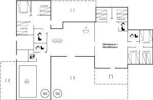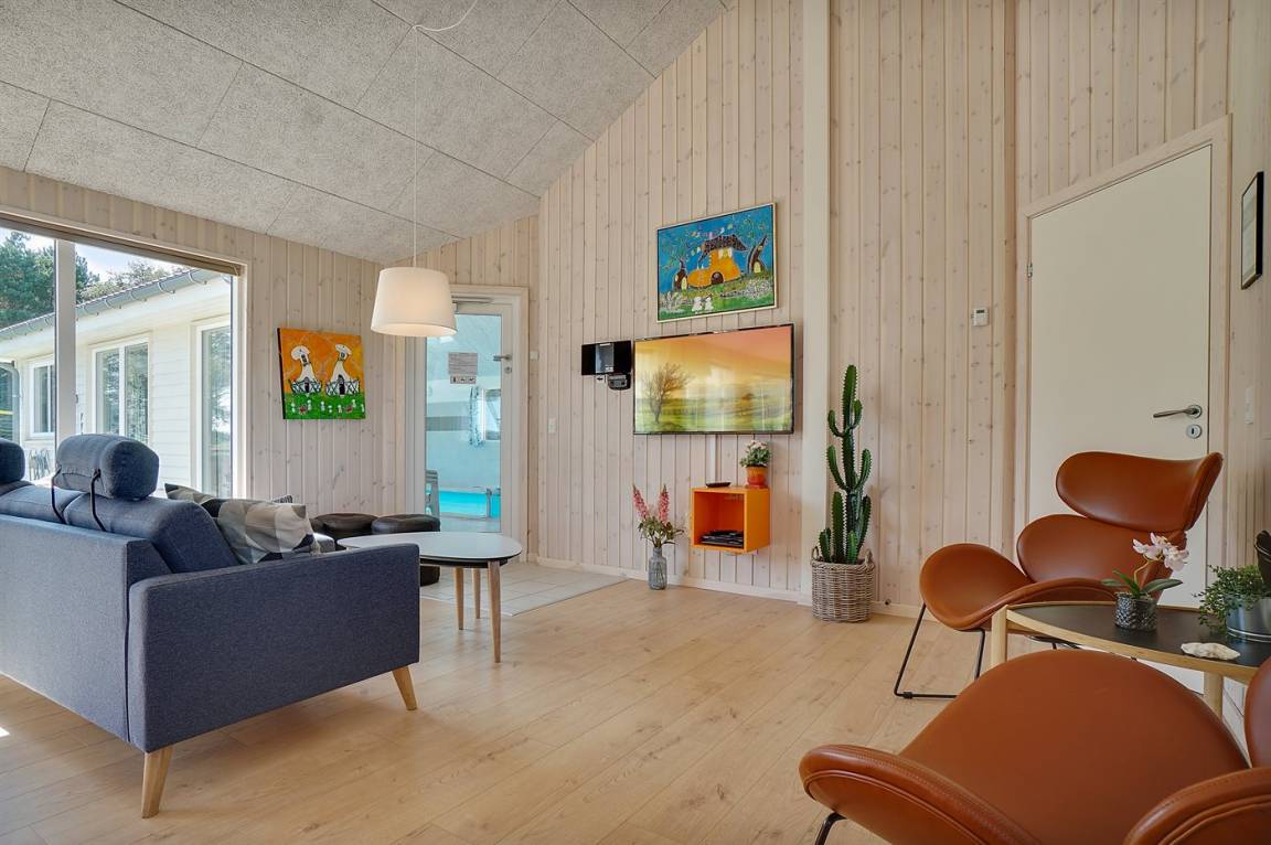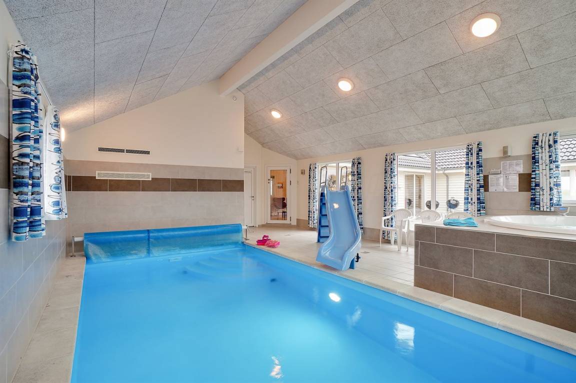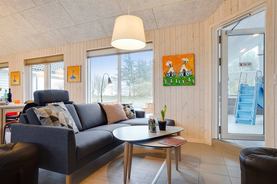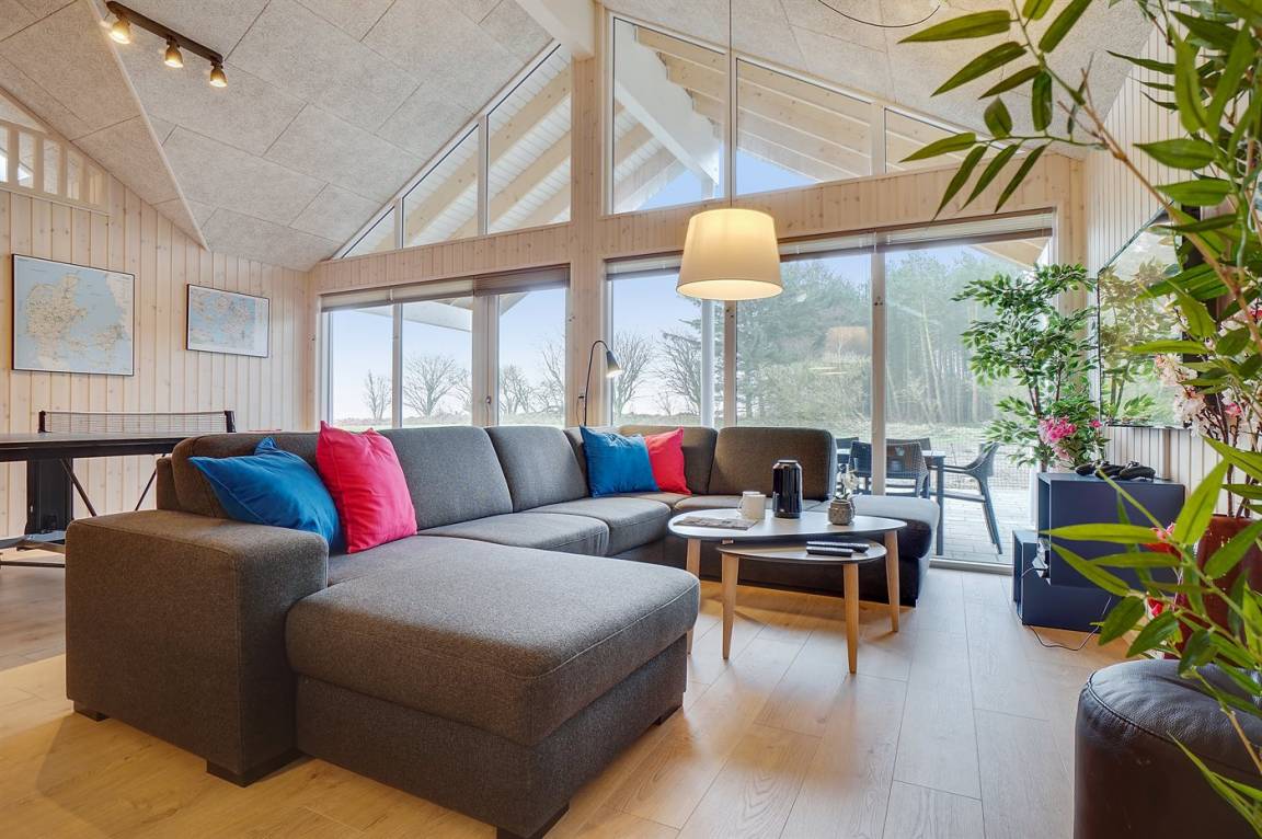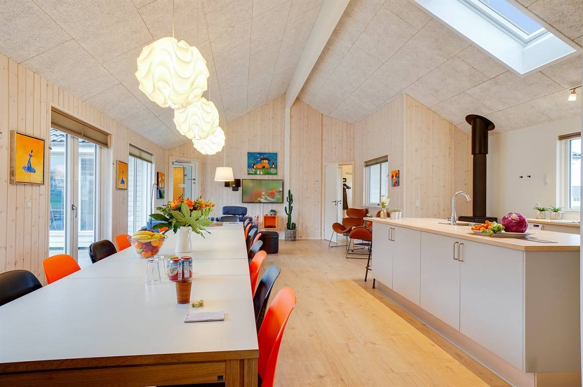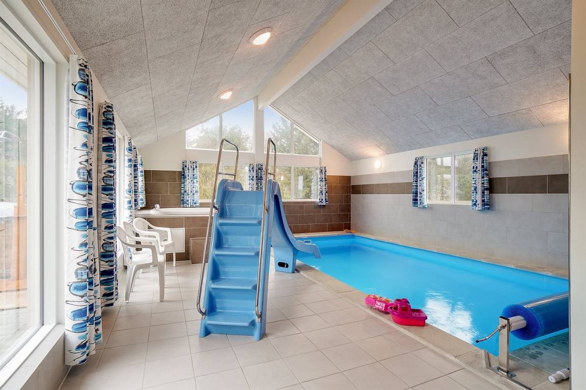 Wenn Sie auf der Suche nach einem großartigen Haus mit Swimmingpool für nicht weniger als 22–24 Personen mit einem großen Angebot für Indoor- und Outdoor-Aktivitäten in der Nähe der Badestrände des Limfjords sind, ist dieses Haus ganz bestimmt das Richtige für Sie. Das Haus verfügt über acht Schlafzimmer, die sich auf drei Bereiche mit eigenem Bad/Toilette verteilen, was für mehr Privatsphäre sorgt. Jedes Zimmer ist mit zwei Qualitätseinzelbetten ausgestattet, die zu einem Doppelbett zusammengesetzt werden können. Zudem befinden sich im großen offenen Obergeschoss sechs Betten und im kleinen offenen Obergeschoss zwei Matratzen. Die Schlafplätze in den offenen Obergeschossen eignen sich bestens für Kinder und Jugendliche. Außerdem gibt es im Unterschlupf eine Federkernmatratze für zwei Erwachsene oder drei Kinder. Alle Zimmer sind mit Verdunkelungsvorhängen ausgestattet. Auch an die Zugänglichkeit für Menschen mit Gehbehinderung und Rollstuhlfahrer ist gedacht: Die Eingangstür ist mit Rampen ausgestattet, es gibt keine Türschwellen und zwei der Schlafzimmer mit zugehörigem Badezimmer sind besonders groß. Das große Badezimmer verfügt über eine behindertengerechte Toilette, einen offenen Duschbereich, einen Wickeltisch, eine Babybadewanne, eine Waschmaschine und einen Trockner.