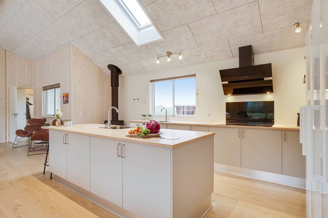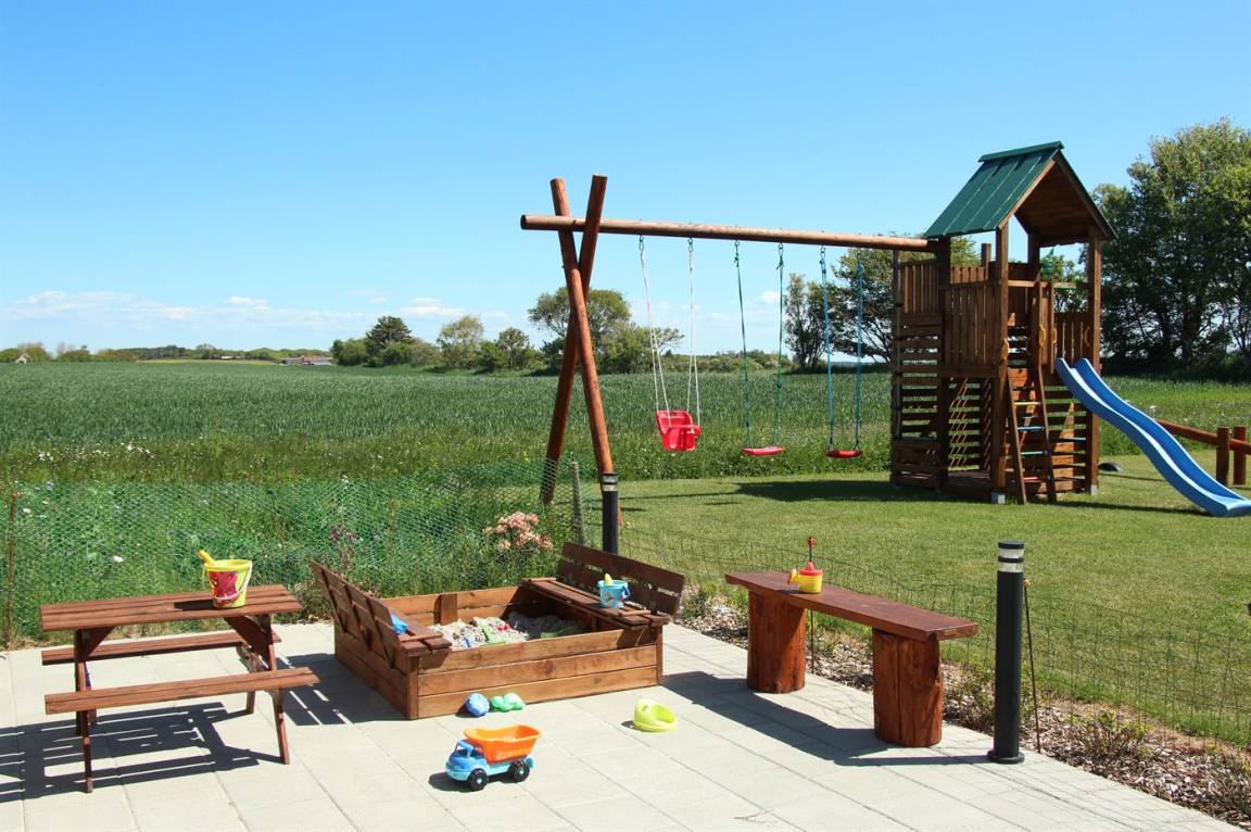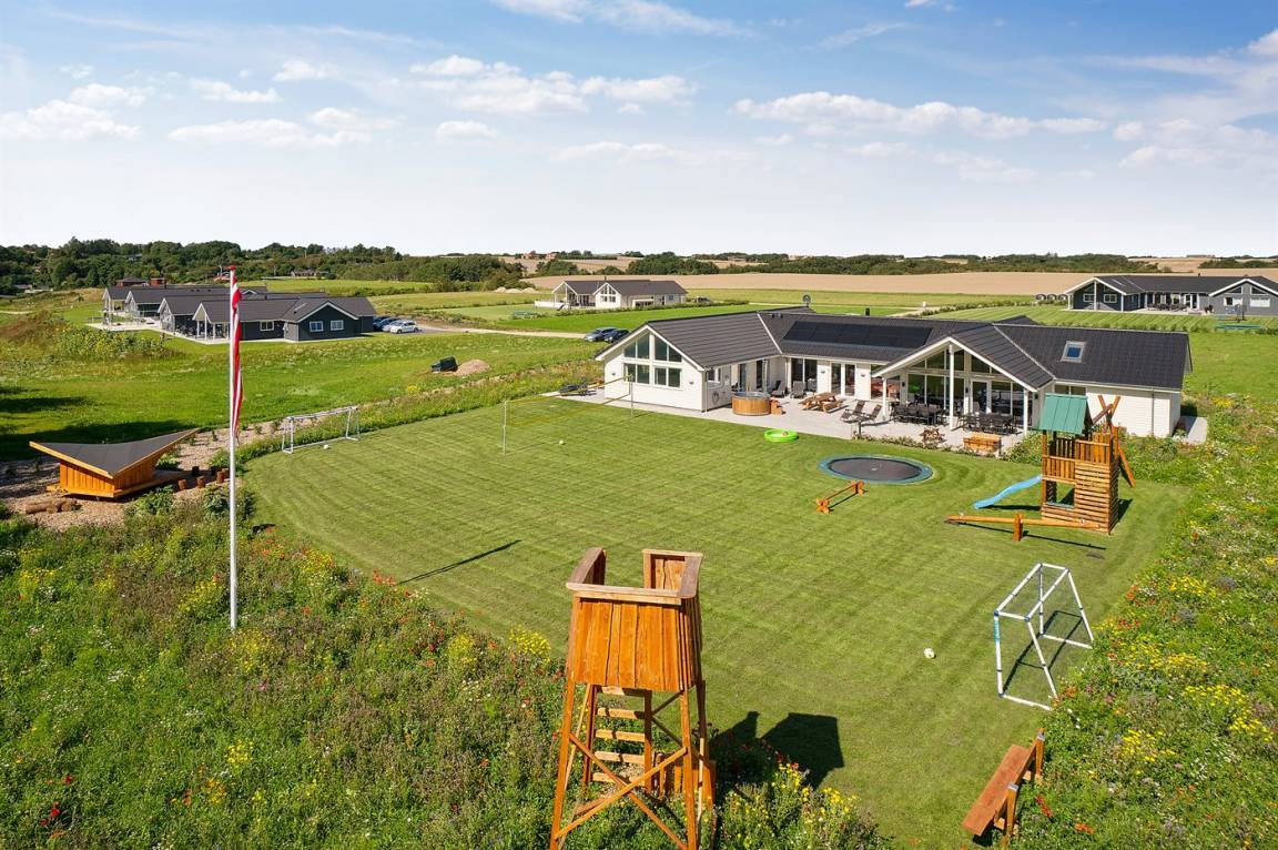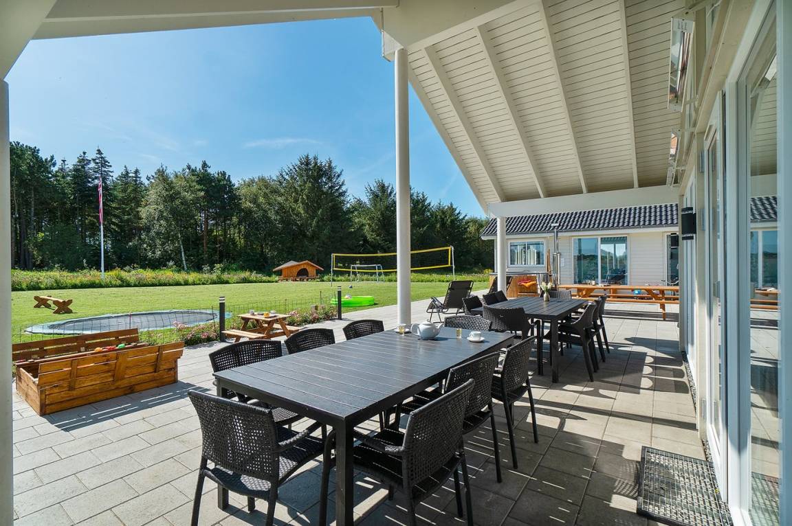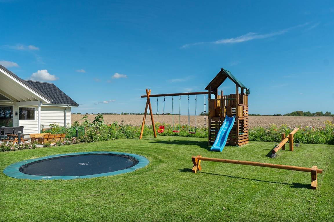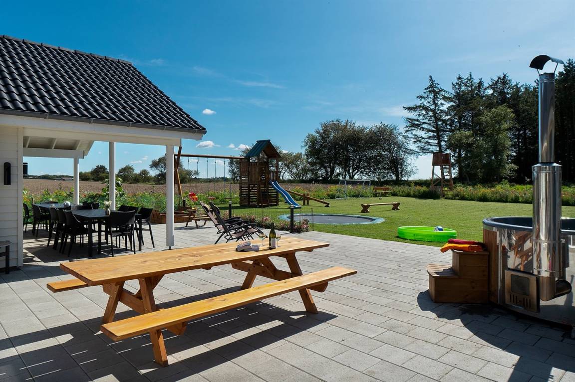 Auf dem 3000 m² großen, ungestörten Eckgrundstück können Sie die frische Luft in vollen Zügen genießen und sogar einen Strauß Feldblumen und Früchte von den vielen Obstbäumen pflücken. Verbringen Sie doch einmal eine Nacht im Unterschlupf, machen Sie Stockbrot an der Feuerstelle und nutzen Sie den Fischreinigungsplatz, wenn Sie Glück beim Angeln im Fjord, in der Nordsee oder im Fluss Karup Å hatten. Die Kinder können sich bestens auf dem Spielplatz austoben. Hier gibt es eine Spielburg, ein Trampolin, Schaukeln, eine Rutsche, eine Wippe, einen Sandkasten und Dreiräder. Auch Volleyball, Fußball, Baseball und Krocket können Sie hier spielen. Oder Sie setzen sich auf eine Bank, um bei einem Nachmittagsbier die Aussicht auf die hügelige Landschaft zu genießen. Vom Aussichtsturm können Sie meilenweit sehen und früh morgens z. B. Rehe, Hasen und Vögel beobachten. Das Haus verfügt über eine Ost-, Süd- und Westterrasse und eine große überdachte Terrasse. Es gibt eine 11-kW-Ladebox für Elektroautos mit integriertem Zähler.