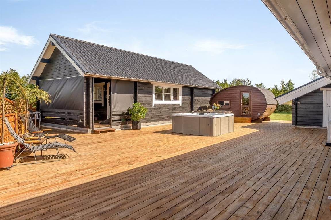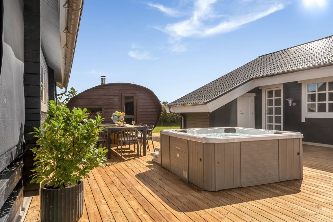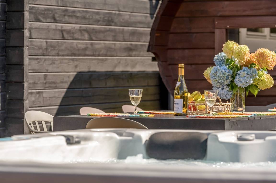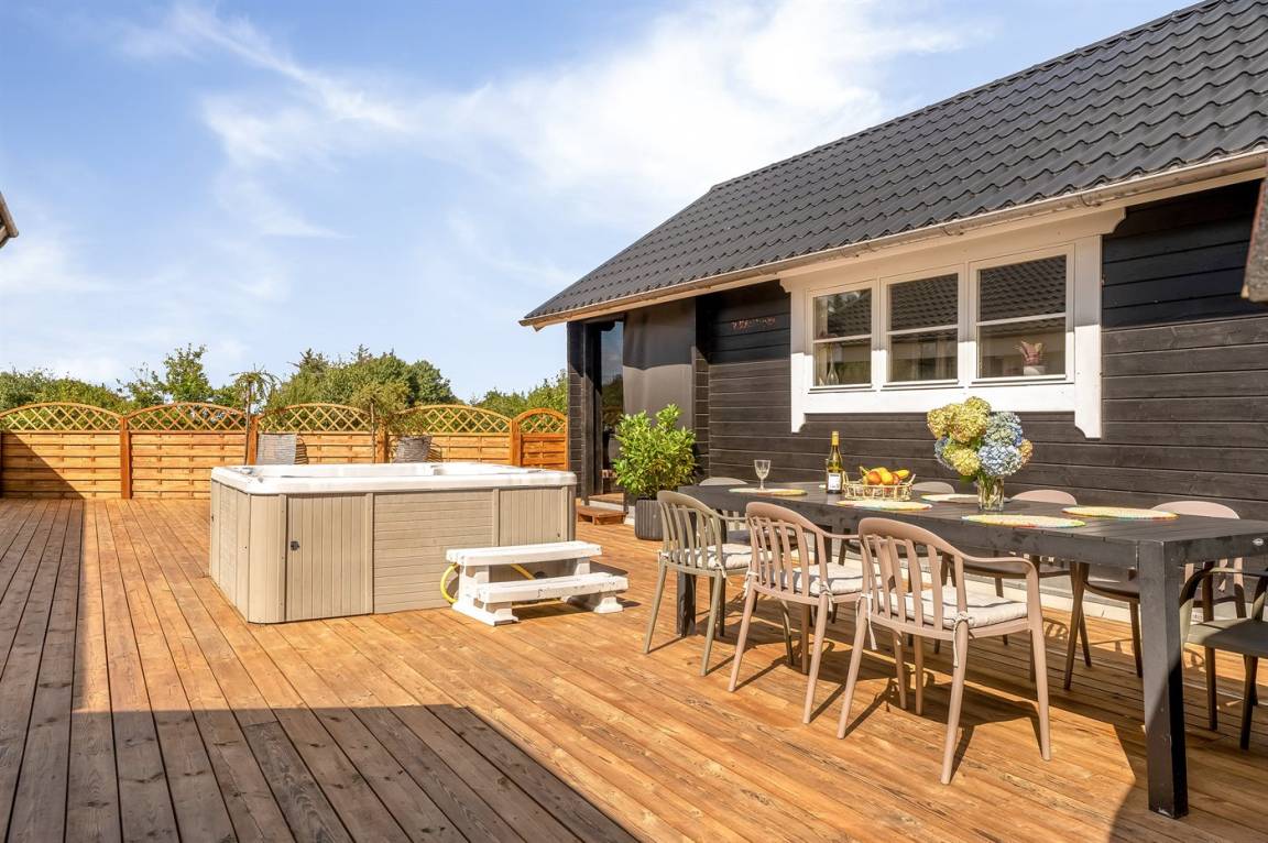 Das Haus verfügt über einen schönen Outdoor-Whirlpool - hier können Sie im warmen Wasser sitzen, die schönen Sommerabende genießen und ganz einfach nur die Seele baumeln lassen.
