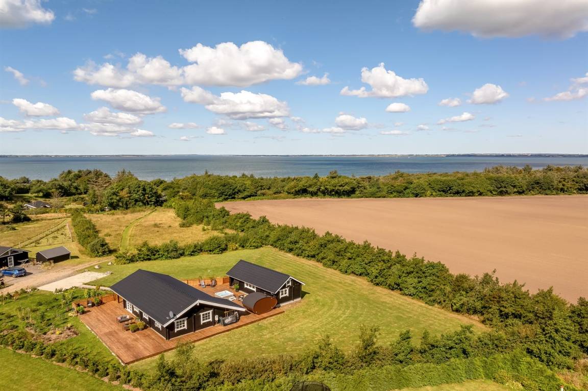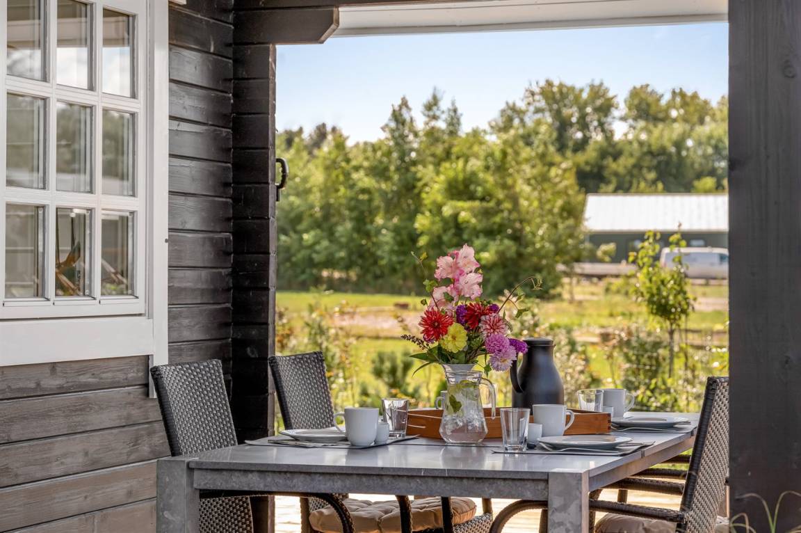 DraußenDie Ferienunterkunft liegt auf einem 2936 m² großen Naturgrundstück. Die Entfernung zum Fjord beträgt 500 m. Die nächste Einkaufsmöglichkeit liegt 2000 m entfernt. Es steht ein offenes Terrassenareal zur Verfügung. Außerdem gibt es überdachte Terrasse. Fußballtor. Außensauna. Parkplatz auf dem Grundstück.