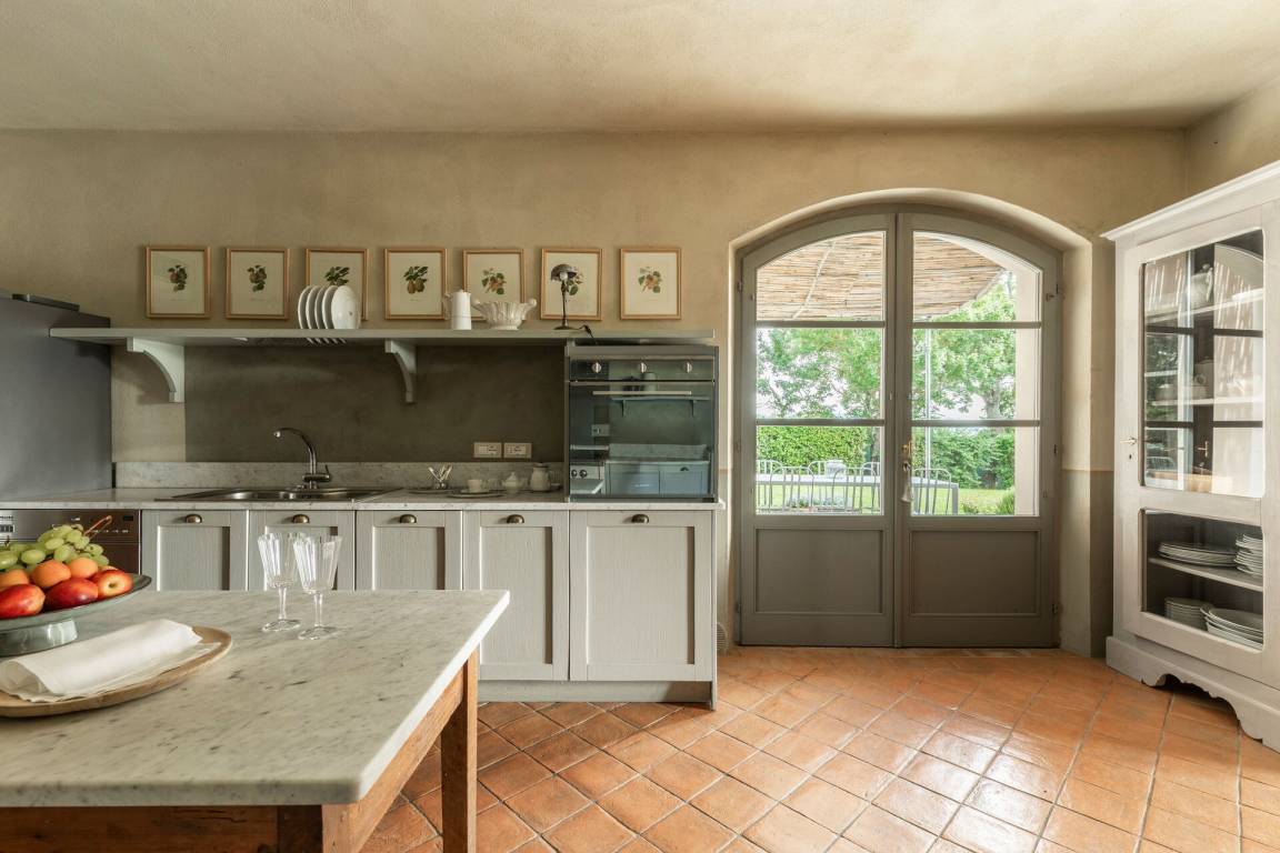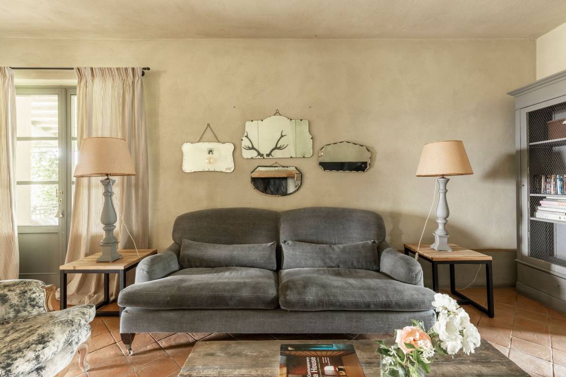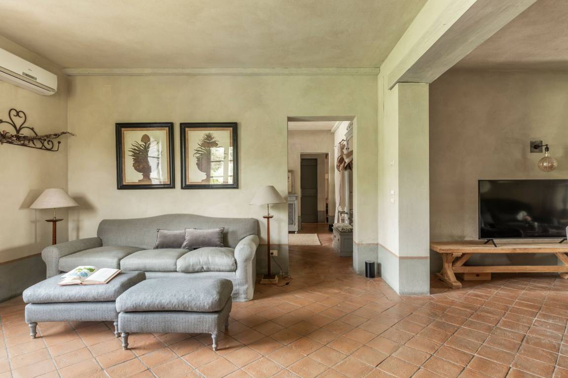 Erdgeschoß:großes Wohnzimmer (Satellitenfernsehen) mit Kamin, Essraum, gut ausgestattete Küche (Ofen, Gefrierfach, Spülmaschine, Grill; Mikrowelle, Toaster, Orangen- und Zitruspresse, elektrische Kaffeemaschine, Mokkamaschine). Zweibettzimmer und privates Bad mit Hydromassage Badewanne, Schlafzimmer mit französischem Bett und privates Bad mit Dusche. Die Zimmer im ersten Stock haben den Zugang nach außen.