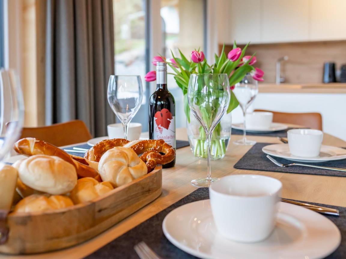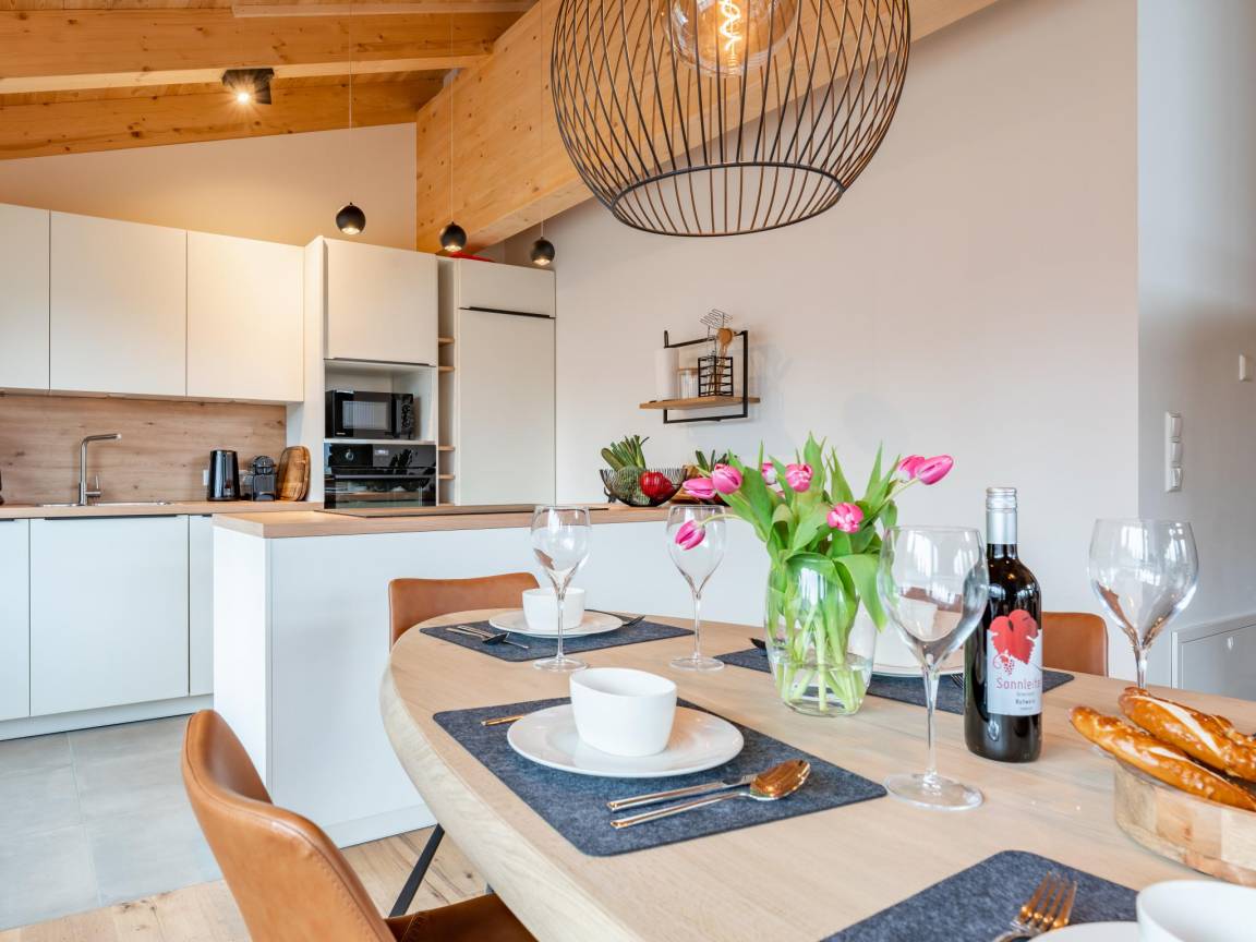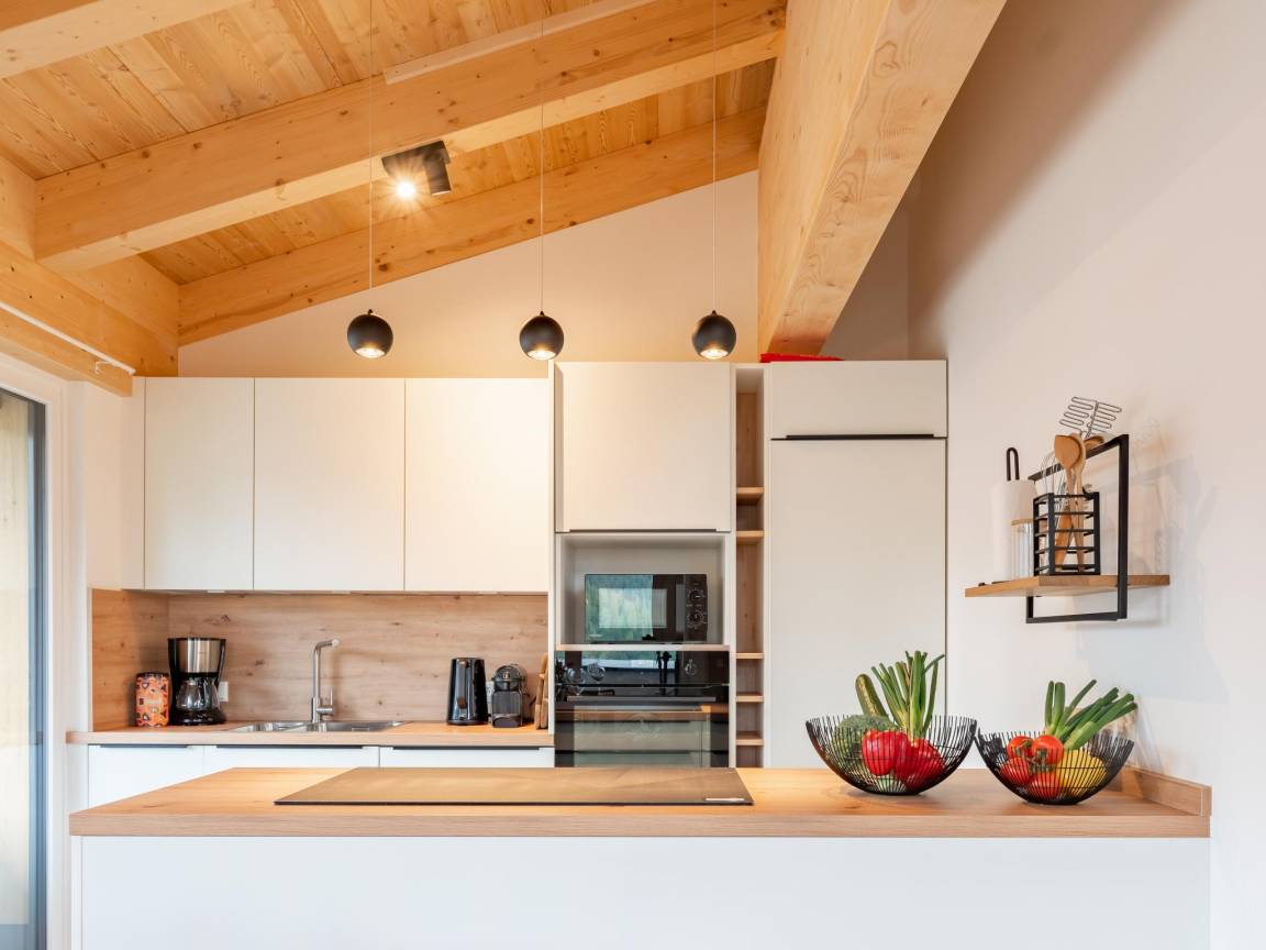 Layout : Parterre: Eingang, offene Küche mit Kamin, Wasserkocher, Toaster, Kochherd, Kaffeemaschine(cups, Filter), Backofen, Mikrowelle, Geschirrspüler, Kühl-/Gefrierkombination, Zitruspresse , Wohn/Esszimmer mit TV(smart TV), Esstisch(10 Personen), Sitzecke, 1x Hochstuhl , Toilette mit Waschbecken, Toilette , Skiabstellraum, Terrasse(überdacht), Fahrradabstellraum, Terrassenheizung, Gartenlounge