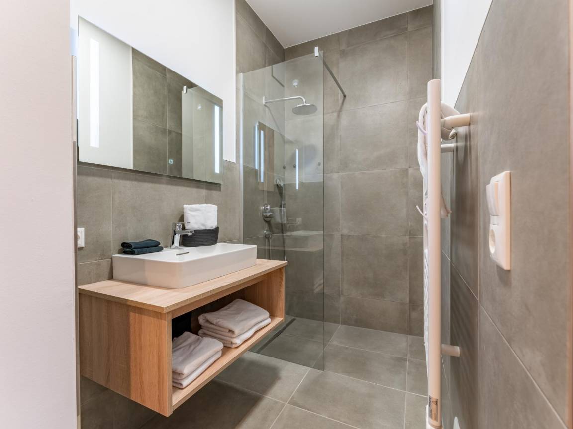 Zwischengeschoss: Eingang, 3x Schlafzimmer mit Badezimmer mit Doppelbett, TV(smart TV), Dusche, Waschbecken, Föhn , Toilette mit Waschbecken, Toilette