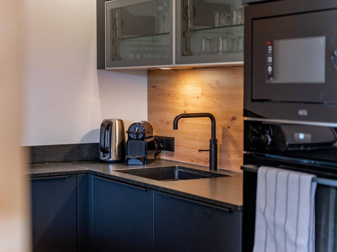 In der 1. Etage: Wohnzimmer mit TV, Esstisch, Sitzecke , offene Küche mit Kochplatte, Dunstabzugshaube, Kaffeemaschine, Backofen, Geschirrspüler, Kühlschrank , Badezimmer mit Dusche, Waschbecken , Toilette mit Waschbecken, Toilette , Terrasse