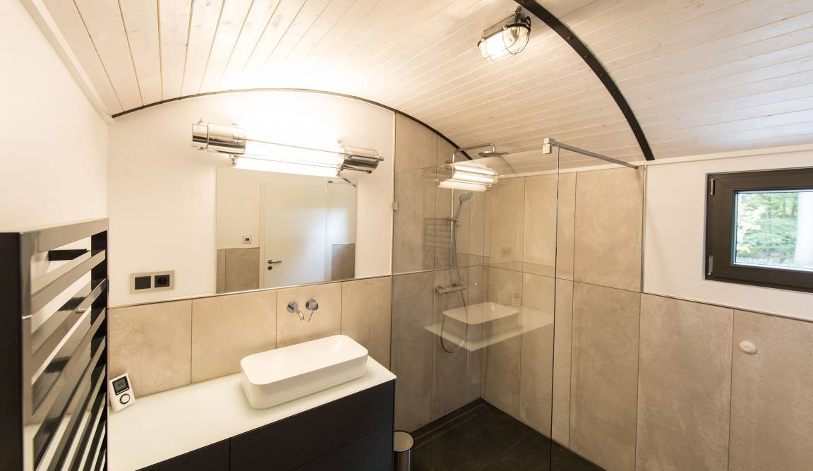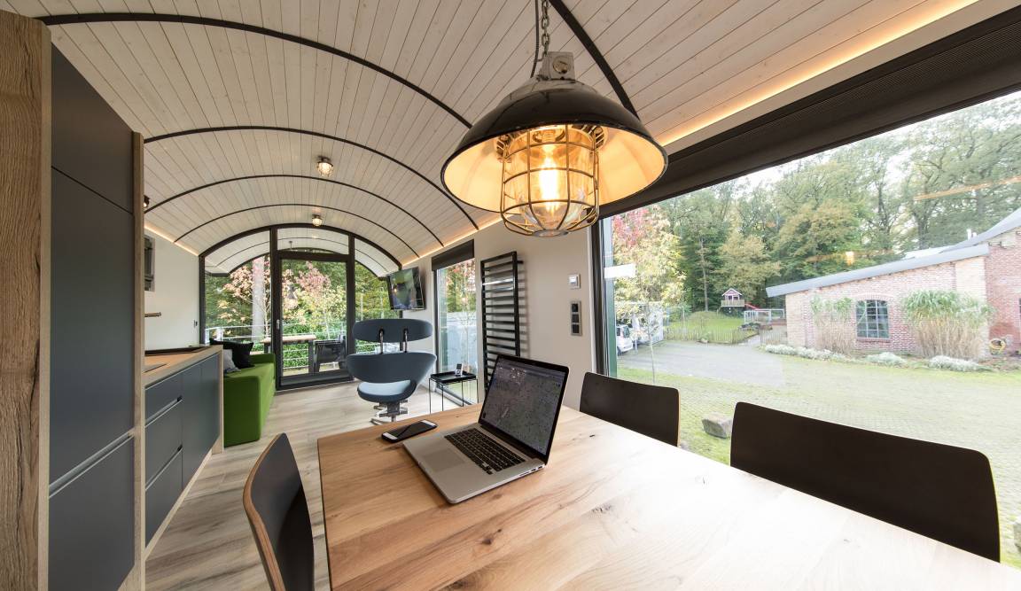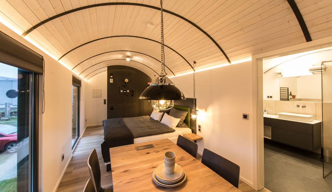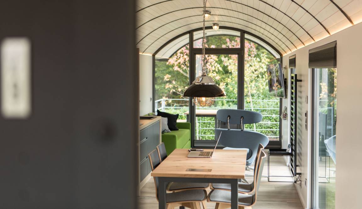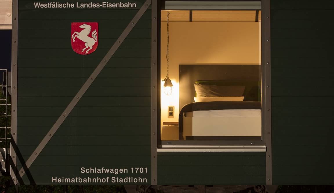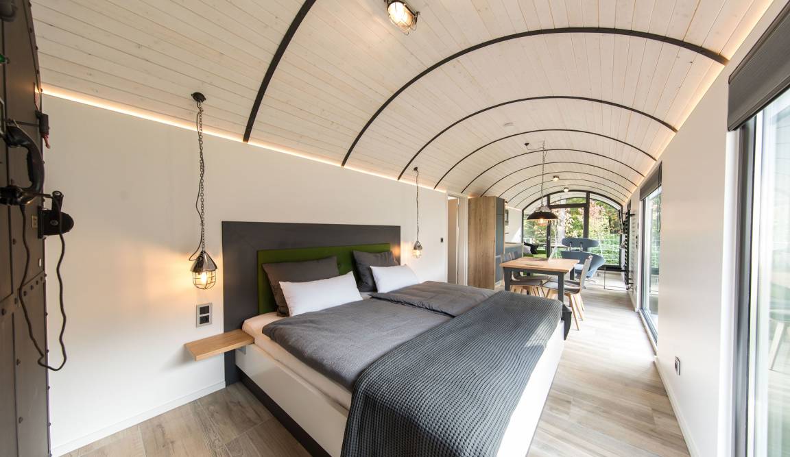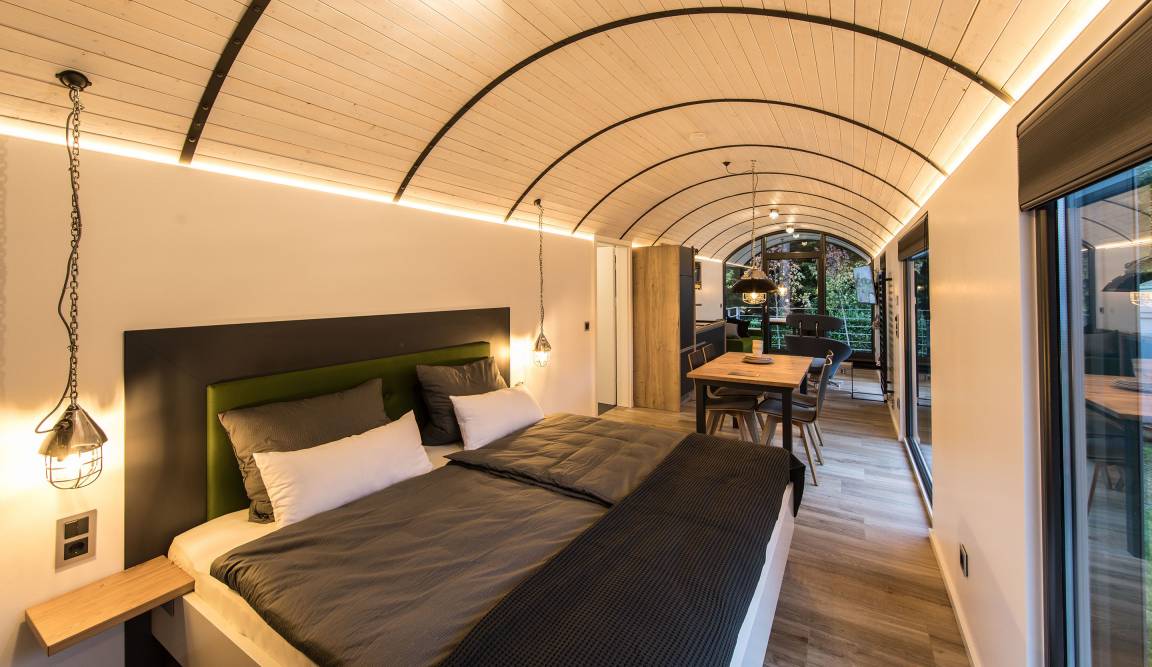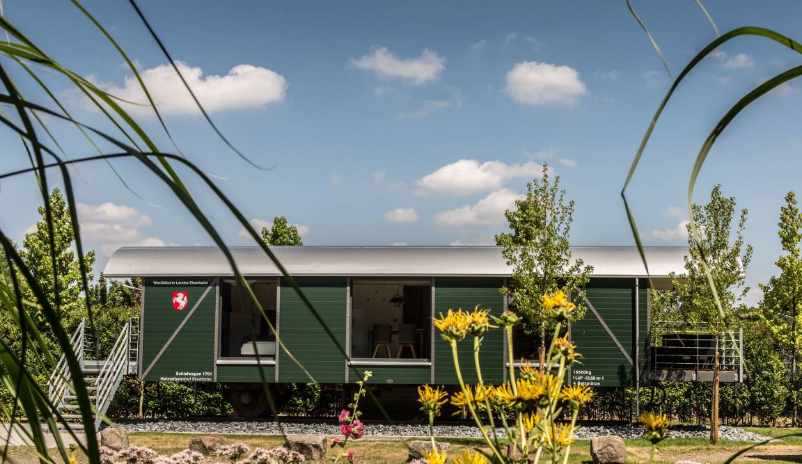 Der alte Waggon der Baureihe 660 wurde von lokalen Handwerkern zum Erste-Klasse-Premium-Schlafwagen umgebaut, der sich harmonisch in die Umgebung des alten Lokschuppens einfügt.