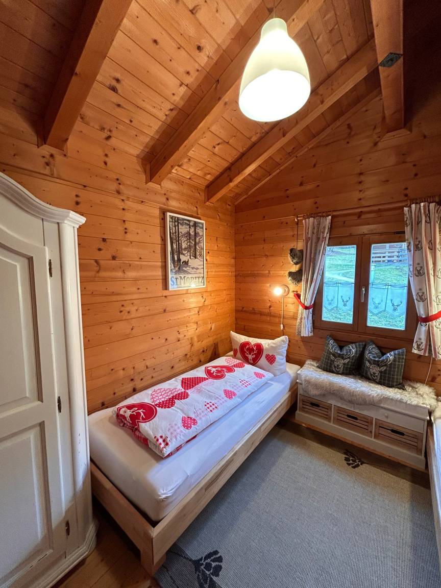 1 Schlafraum mit zwei getrennten Betten und eingebautem Hochbett und genügend Stauraum für Kleidung.