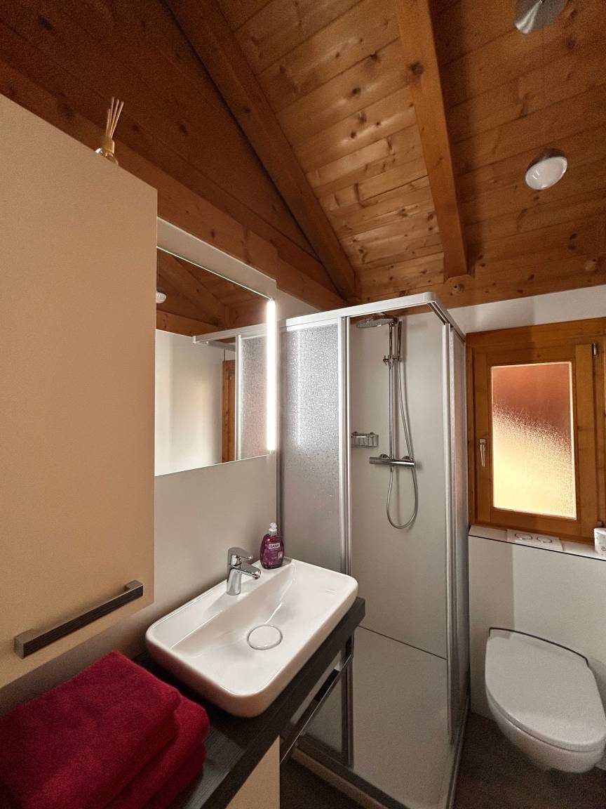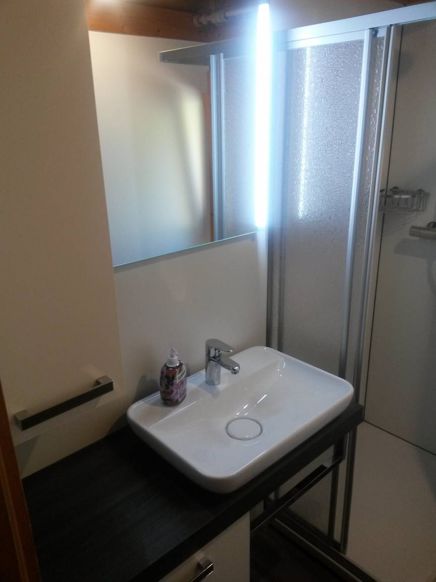 Anbau mit Einbauschrank (Elektrogrill, portable Mikrowelle und Stauraum), 5 Terrassenstühle mit Sitzkissen, 2 Sonnenliegen, Sonnenschirm, Wäscheständer, Rodelschlitten, Wäschekorb und -klammern, Untergestell für E-Grill.