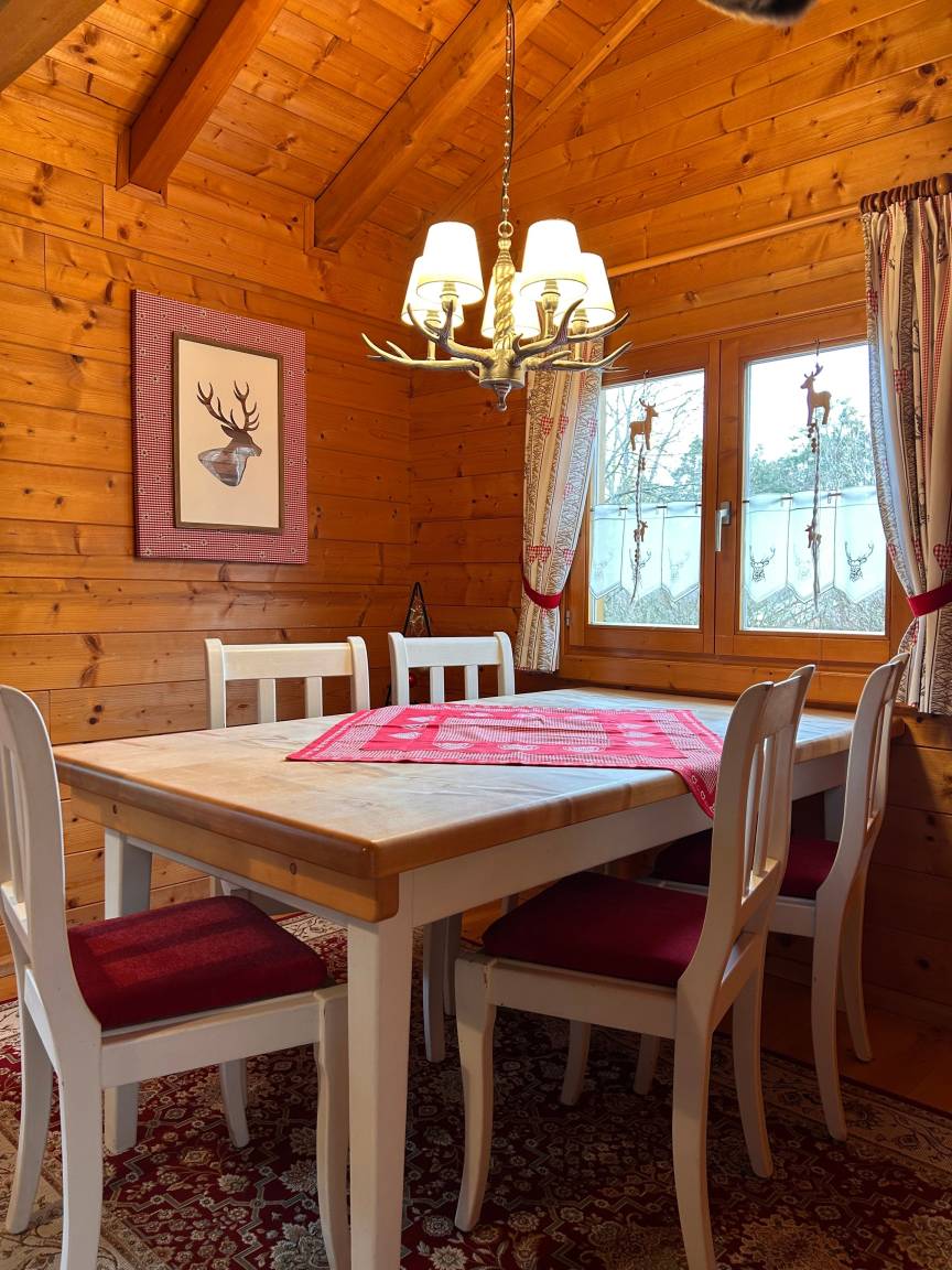 1 Wohn- / Essraum mit bequemer Sitzgruppe, Schrankwand mit grosszügiger Unterbringung von Geschirr und Gläsern für 10 P, SAT-Digital-TV, Stereoanlage mit CD-Player, Videorecorder / DVD-Player, Essecke (Tisch 1,0 m x 1,8 m) und schnurlosem Telefon für Notrufe und Rufannahme.