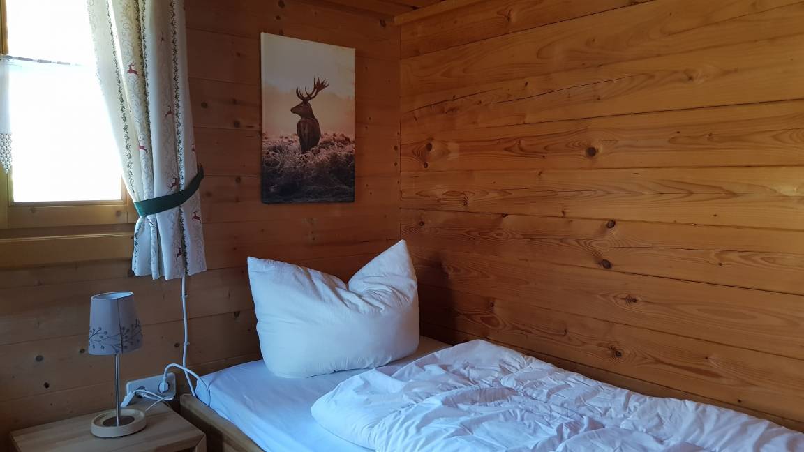 1 Schlafraum mit zwei getrennten Betten und eingebautem Hochbett und genügend Stauraum für Kleidung.