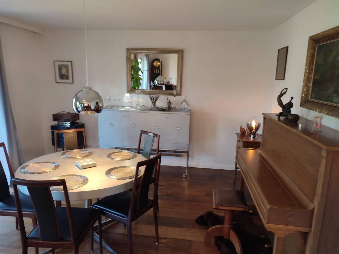 6 lichtdurchflutete Zimmer, 3 Badezimmer, 1 Gästetoilette, 4 Schlafzimmer, 140 qm nicht einsehbarer, großer Privatgarten, durch Solarenergie klimatisiertes Dachgeschoss mit sehr leistungsstarker (4 kW), neuer Klimaanlage, so dass ein wunderbares "Wohlfühlklima" im gesamten Haus entsteht, 2 Glasduschen, 1 Badewanne, 4 Schreibtische bzw. Arbeitsplätze, 6 Schlafplätze und ein aufblasbares Notbett für Gäste, Massagesessel (sehr sanft!), Abstellkammer im Garten, edle Gartenmöbel aus Polyrattan mit weißen Polstern, 3 internetfähige Flachbildfernseher (2 davon sehr groß), sehr gute Stereoanlage, 3 Föne, neue Handtücher, Bügelbrett und Bügeleisen, neue Trockner, neue Waschmaschine, Geschirrspülmaschine, hervorragend klingendes im April 2025 neu gestimmtes Klavier inklusive Notenbücher, im Dach teilweise elektrische, teilweise mechanische Außenjalousien, große Einzelgarage mit Elektrotor, Tischtennisplatte und 4-5 Fahrräder, Fußball-Kicker Spiel, Gesellschaftsspiele, klimatisiertes Dachgeschoss