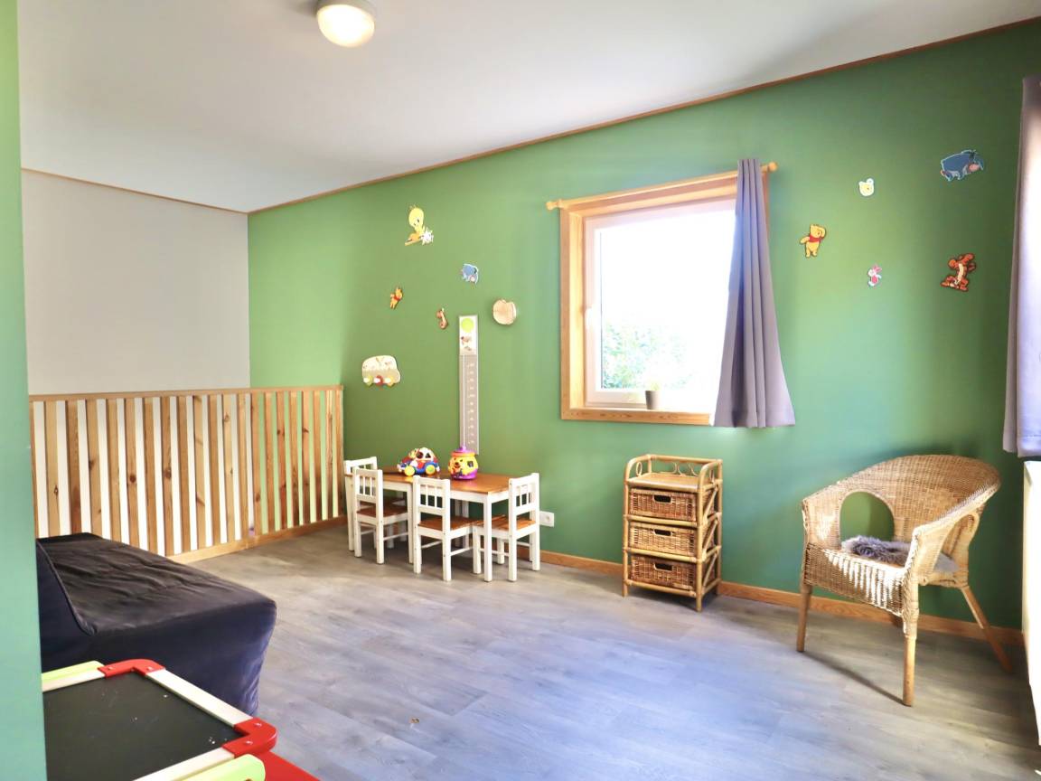 In der 1. Etage: Schlafzimmer mit Badezimmer mit 2x Einzelbett(Bettdecke, 90 x 200 cm), Dusche, Waschbecken , Schlafzimmer mit Badezimmer mit 2x Einzelbett(Bettdecke, 90 x 200 cm), Dusche, Waschbecken , Schlafzimmer mit Badezimmer mit 2x Einzelbett(Bettdecke, 90 x 200 cm), Etagenbett(Bettdecke, 90 x 200 cm), Dusche, Waschbecken , Toilette, Spielzimmer mit Spielgeräte