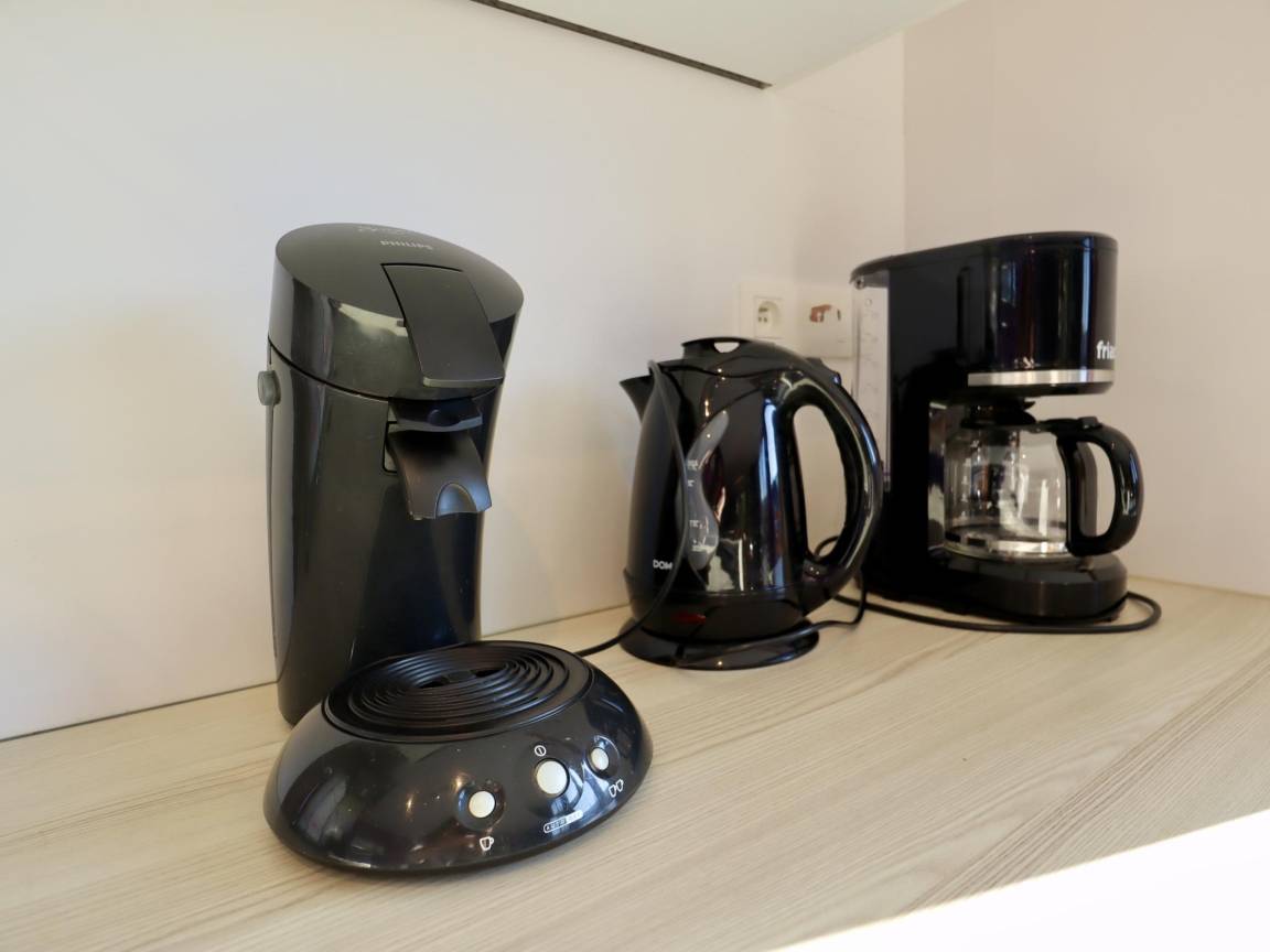 Layout : Parterre: Eingang, Wohnzimmer mit TV, Esstisch(8 Personen), Sitzecke , offene Küche mit Kochplatte(4 Kochplatten, elektrisch), Wasserkocher, Toaster, Kaffeemaschine(senseo pads), Kaffeemaschine(Filter), Backofen, Mikrowelle, Geschirrspüler, Kühl-/Gefrierkombination, Mixer , Toilette, Waschraum mit Staubsauger, Bügelbrett, Bügeleisen , Ruheraum mit Wellness Badewanne(alleinige Nutzung, 2 Personen), Dusche, Sauna(alleinige Nutzung, 4 Personen)