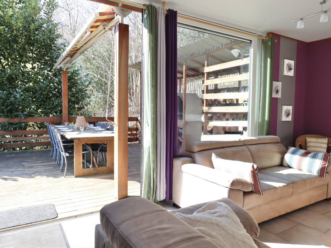 Hausbeschreibung : In der Nähe des Flusses gelegen, verfügt das Haus über ein großes Wohnzimmer mit gut ausgestatteter offener Küche, drei Schlafzimmer mit Badezimmer en suite und ein Spielzimmer mit Tischfußball und Spielen für Kinder. Für Ihre Entspannung bietet die Unterkunft einen Wellnessbereich mit Sauna und Whirlpool! Außerdem gibt es eine großartige Terrasse mit Grill, einen privaten Garten mit Bouleplatz und einen privaten Strand am Fluss.
