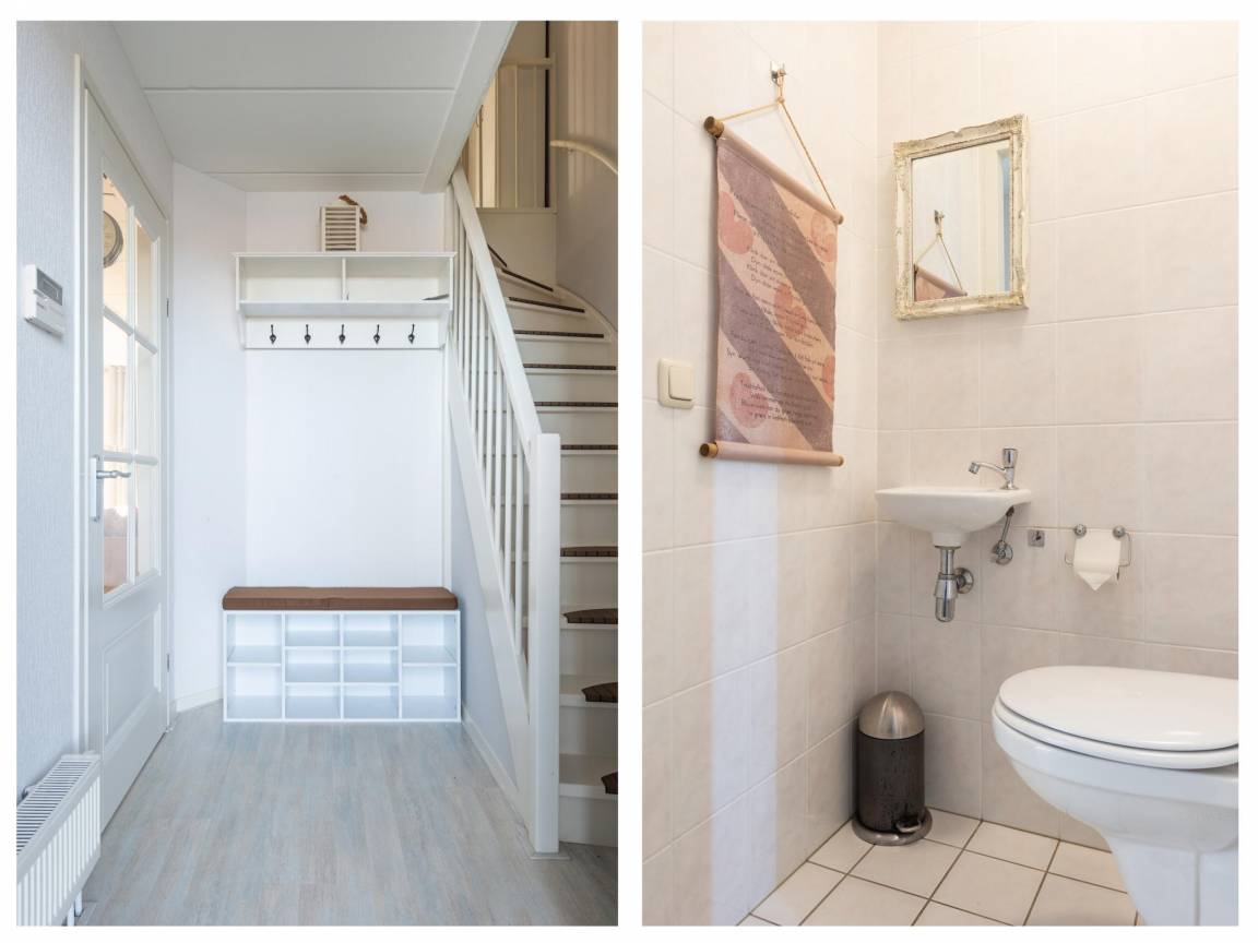 In der 1. Etage: Eingang mit Toilette , Küche mit Kochherd, Dunstabzugshaube, Kaffeemaschine(nespresso cups), Kombi-Mikrowelle, Geschirrspüler, Kühlschrank(+ Gefrierfach) , Wohn/Esszimmer(40 m²) mit TV(Flatscreen, smart TV, Niederländische TV-Kanäle, Deutsch Fernsehsender, internationale TV-Kanäle), 1x Kinderbett (ohne Bettwäsche), 1x Hochstuhl , Gartentüren, Terrasse(alleinige Nutzung, 40 m²), Gartenmöbel