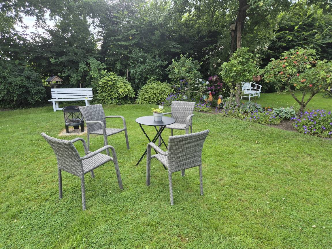 Bücher, Gesellschaftsspiele , kostenloses Wlan, eine Alexa, und ausreichend Parkplätze auf der großen Hofstelle sind vorhanden.