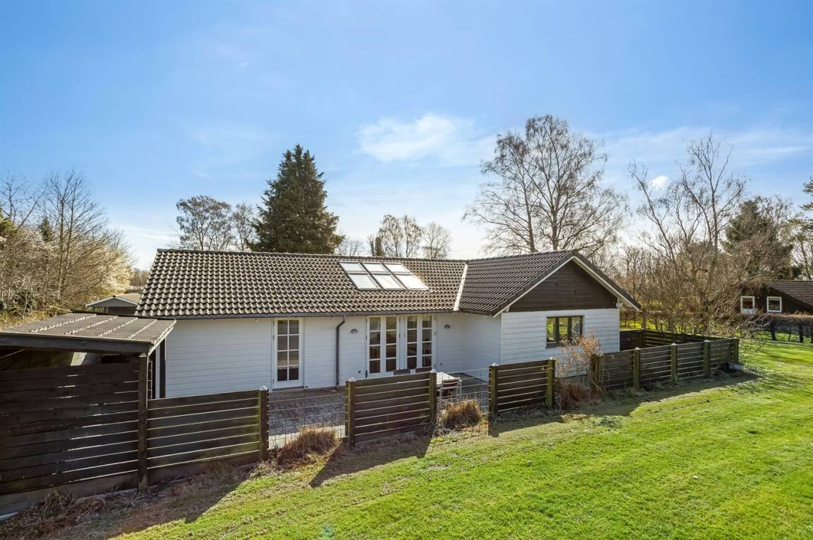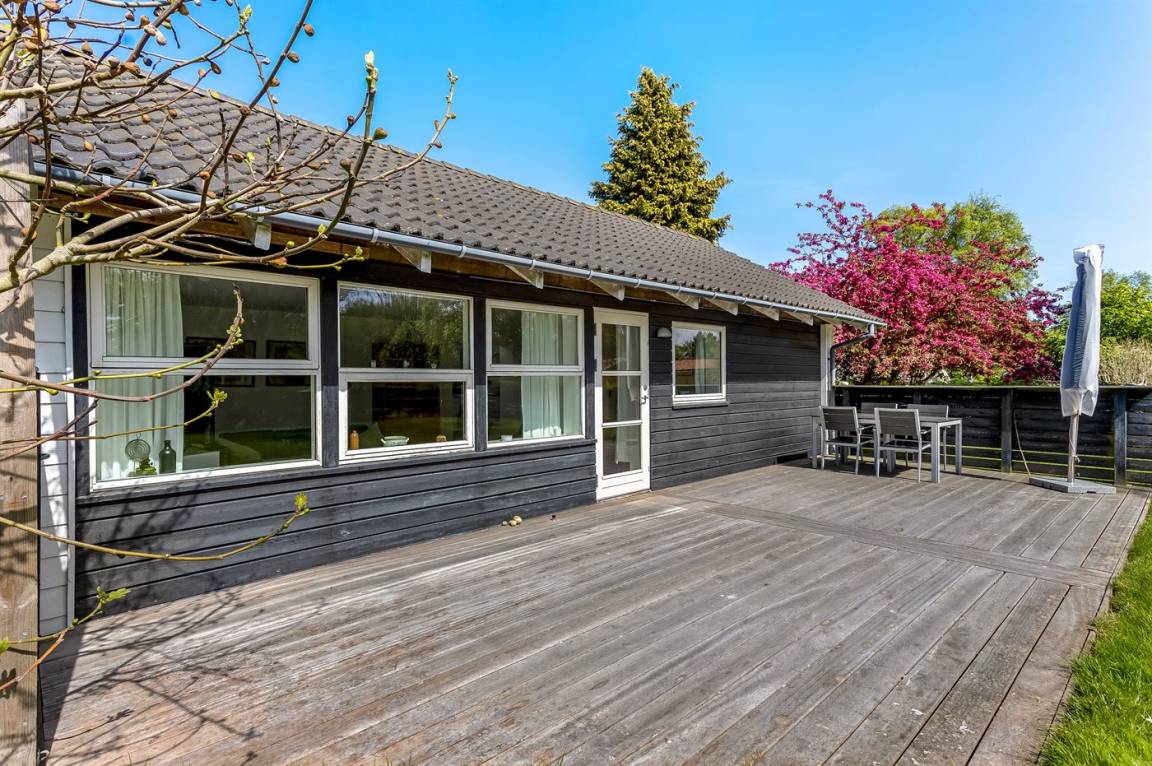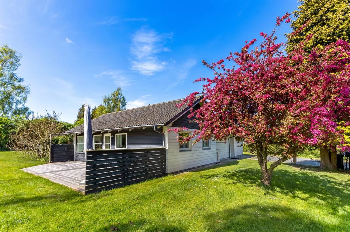Ein besonders gemütliches Ferienhaus am Råbylille Strand auf Møn. Das Haus liegt auf einem schönen Grundstück, wo du deinen Urlaub in Ruhe und Frieden genießen kannst – nur 150 m vom herrlichen, kinderfreundlichen Badestrand entfernt.