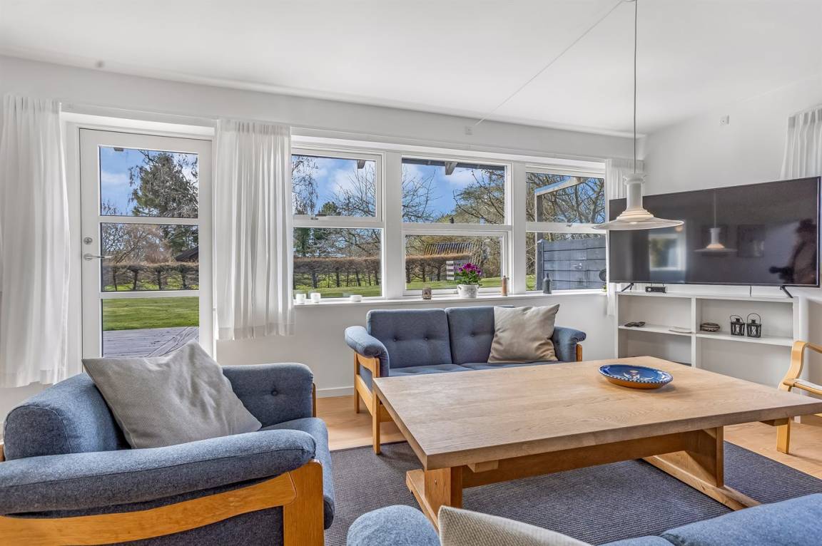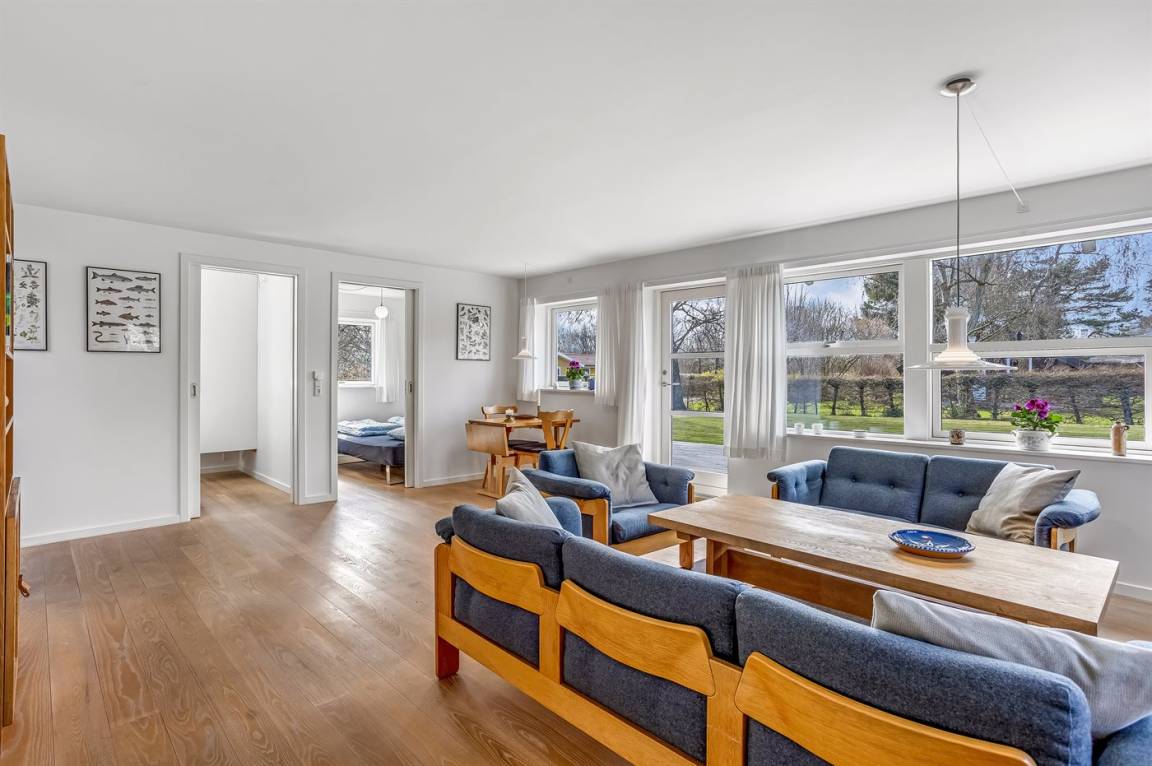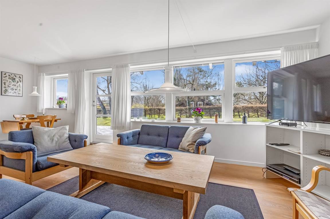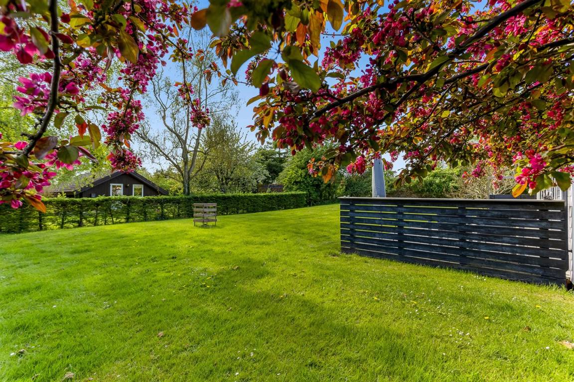 Ein besonders gemütliches Ferienhaus am Råbylille Strand auf Møn. Das Haus liegt auf einem schönen Grundstück, wo du deinen Urlaub in Ruhe und Frieden genießen kannst – nur 150 m vom herrlichen, kinderfreundlichen Badestrand entfernt.