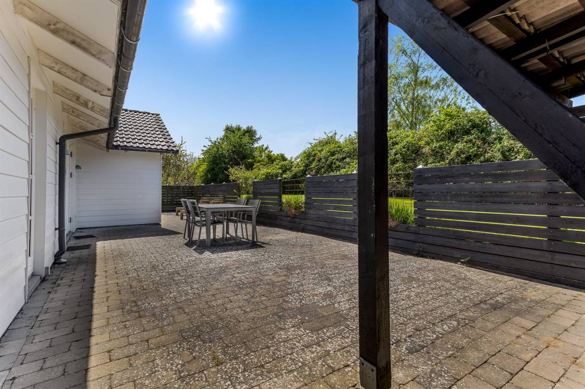 DraußenDie Ferienunterkunft liegt auf einem 1225 m² großen Gartengrundstück. Die Entfernung zum Meer beträgt 150 m. Die nächste Einkaufsmöglichkeit liegt 5000 m entfernt. Es steht ein geschlossenes Terrassenareal zur Verfügung. Gasgrill steht zur Verfügung. Es ist ein Ladestecker für Elektroautos installiert. Ladestecker Typ 2. Mit einer Ladeleistung von 22 kW. Parkplatz auf dem Grundstück.