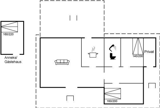 SchlafverhältnisseDie Schlafplätze verteilen sich auf 3 Schlafräume. 6 Schlafplätze in Doppelbetten. 2 von diesen Schlafplätzen befinden sich im Gästehaus.