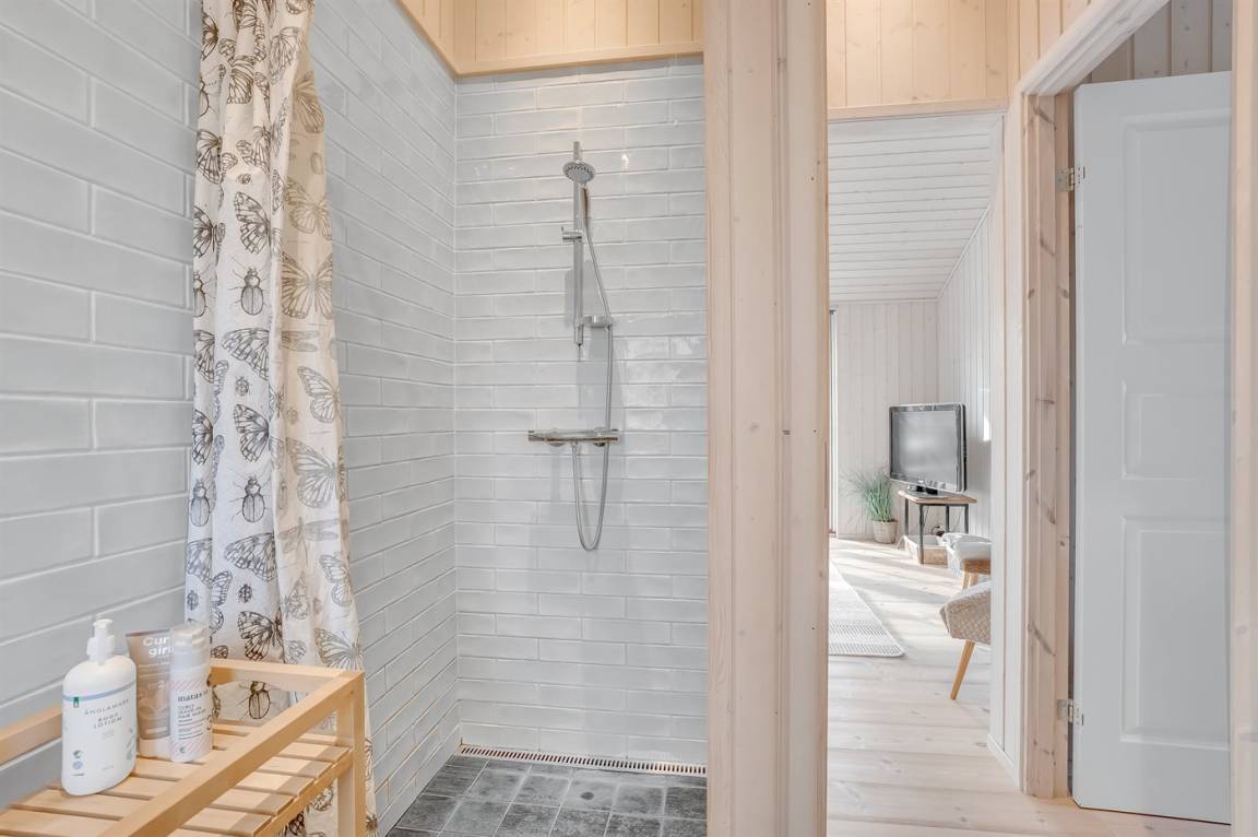 Nach einem Ausflug ins kühle Nass kannst du dich in der Außensauna aufwärmen und unter der Außendusche abspülen. Im Garten gibt es eine Lagerfeuerstelle - von hier aus kannst du den Sonnenuntergang genießen. Das Haus wird mit Hilfe von einer Wärmepumpe beheizt und in den Schlafzimmern gibt es elektrische Heizkörper.