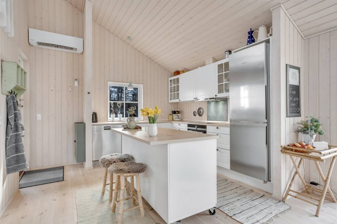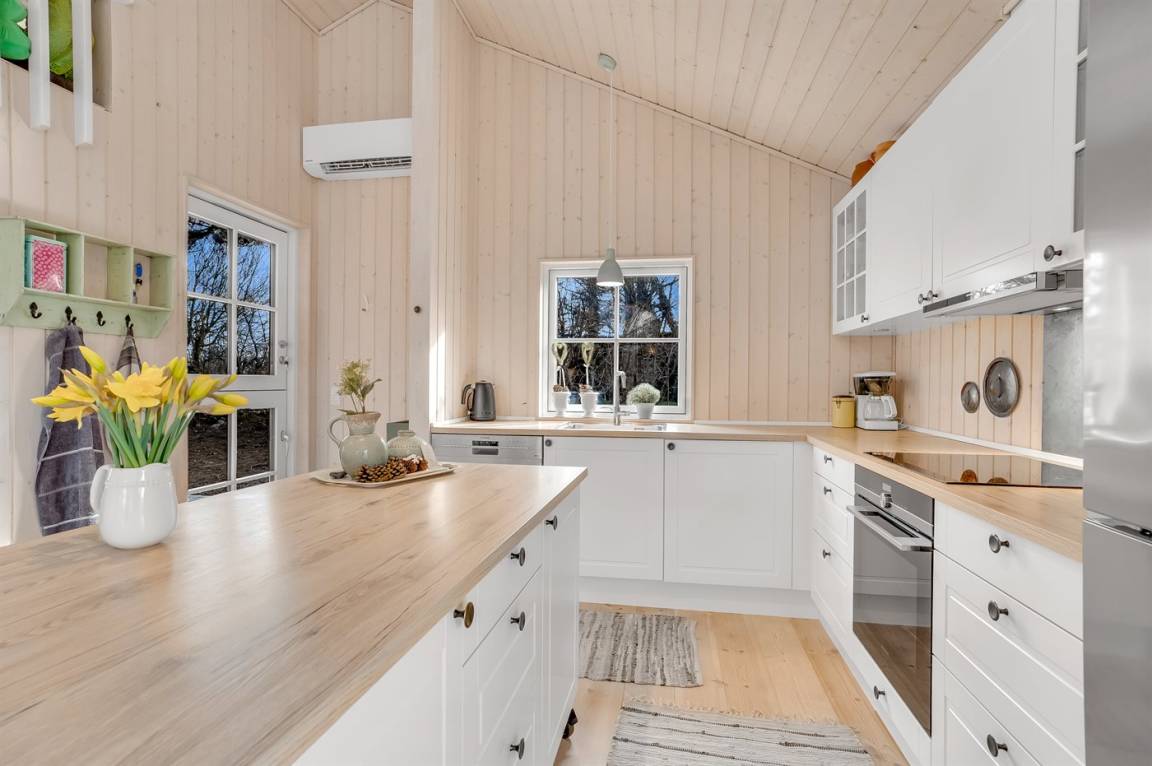 Das Haus verfügt über eine offene Küche mit allen modernen Geräten und Haushaltsgeräten. Ein großes Wohn- und Esszimmer mit modernen Möbeln und Zugang zur Terrasse und dem Garten. Ein Badezimmer mit Duschnische und Fußbodenheizung sowie ein Gästetoilette. 2 gute Schlafzimmer mit Doppelbett sowie ein Schlafzimmer mit Etagenbett. Außerdem gibt es ein offenes Obergeschoss mit 4 Schlafplätzen. Die Kinder werden es lieben, dort zu schlafen.
