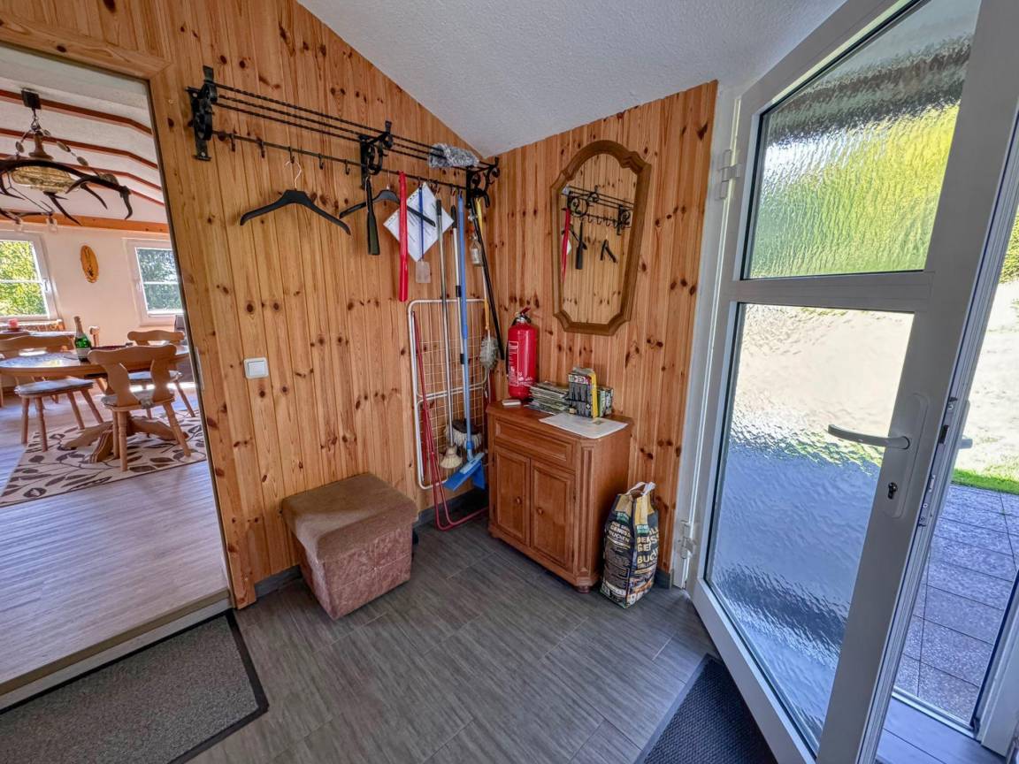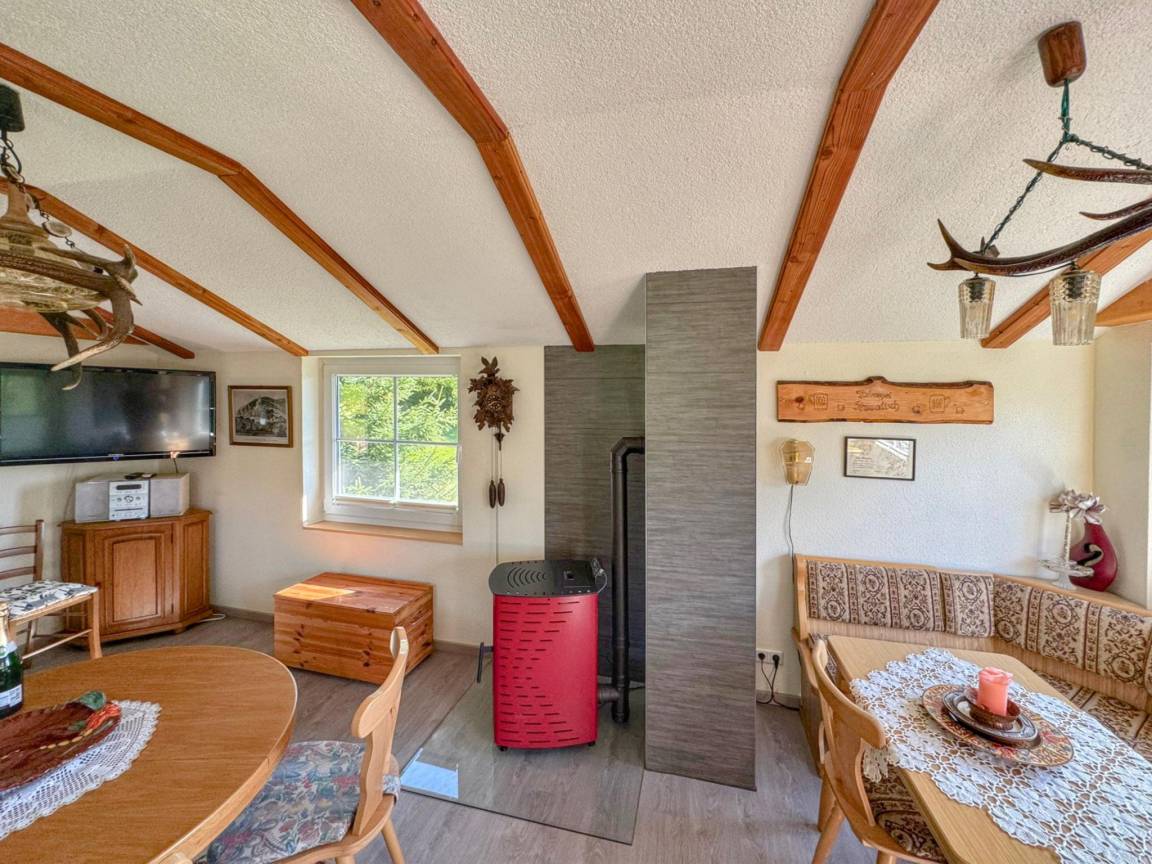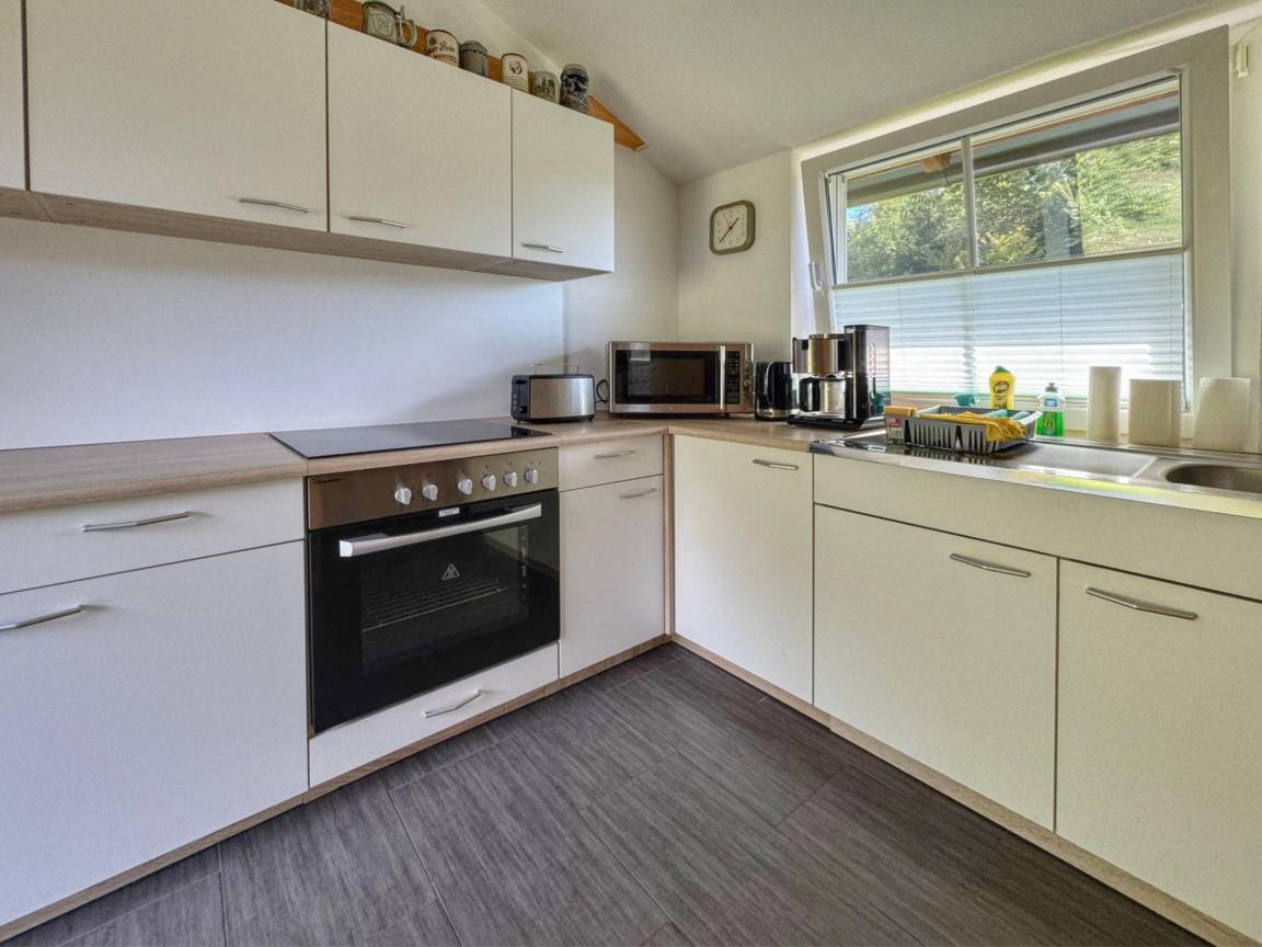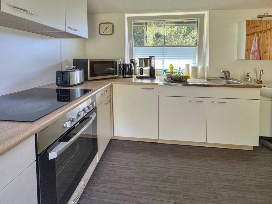 In der 1. Etage: Wohnzimmer mit Doppelschlafcouch, TV(Flatscreen), Esstisch, Ofen(Pellet-Holzofen ), Radio , Küche mit Wasserkocher, Toaster, Kochherd(3 Kochplatten), Dunstabzugshaube, Kaffeemaschine(Filter), Backofen, Mikrowelle, Kühlschrank(+ Gefrierfach)