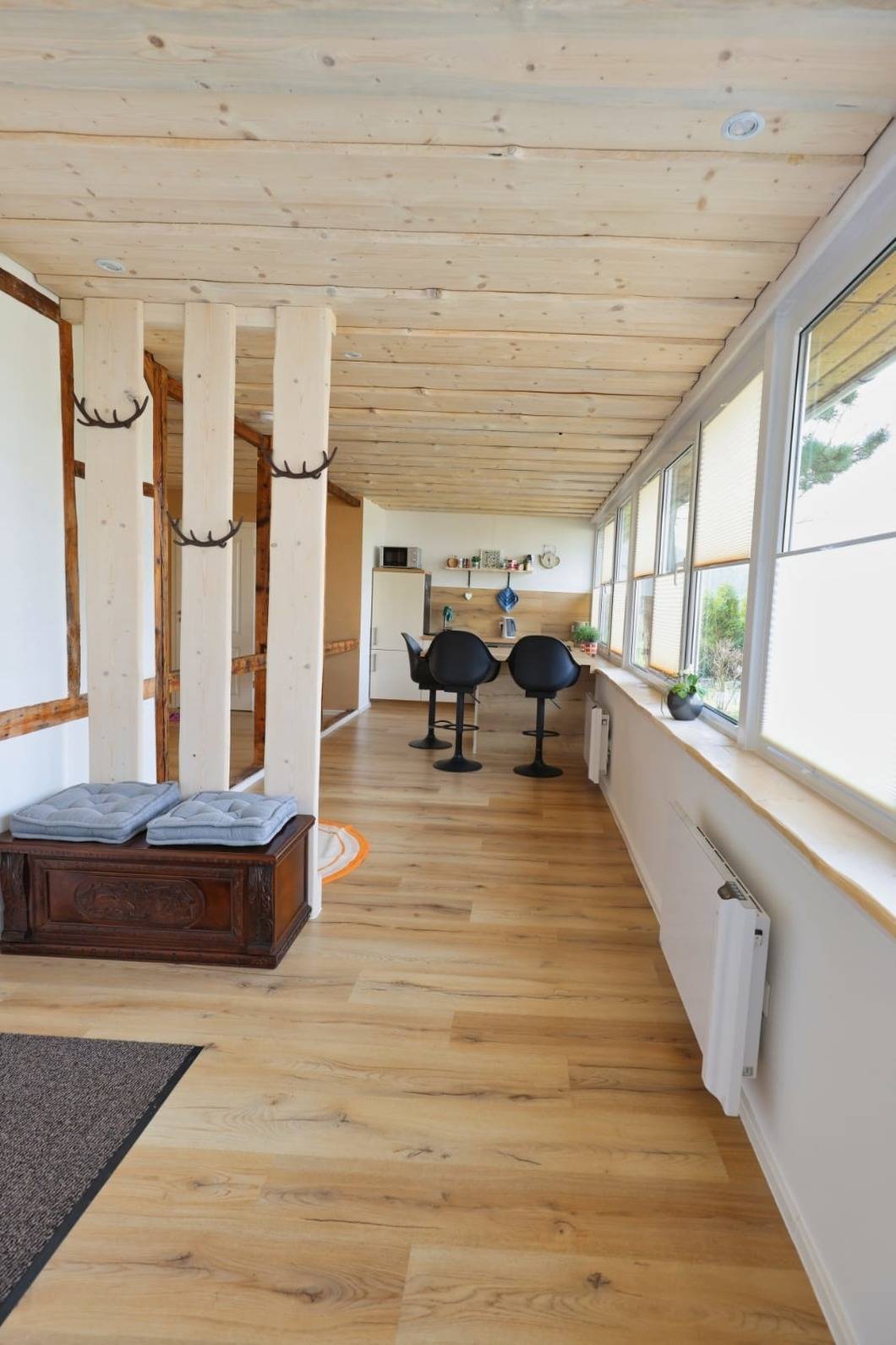 Die Ferienwohnung befindet sich in einem großen Bungalow direkt mit Blick auf den Kuhberg. Das alte Fachwerk wurde komplett saniert und im Frühjahr 2021 fertiggestellt.