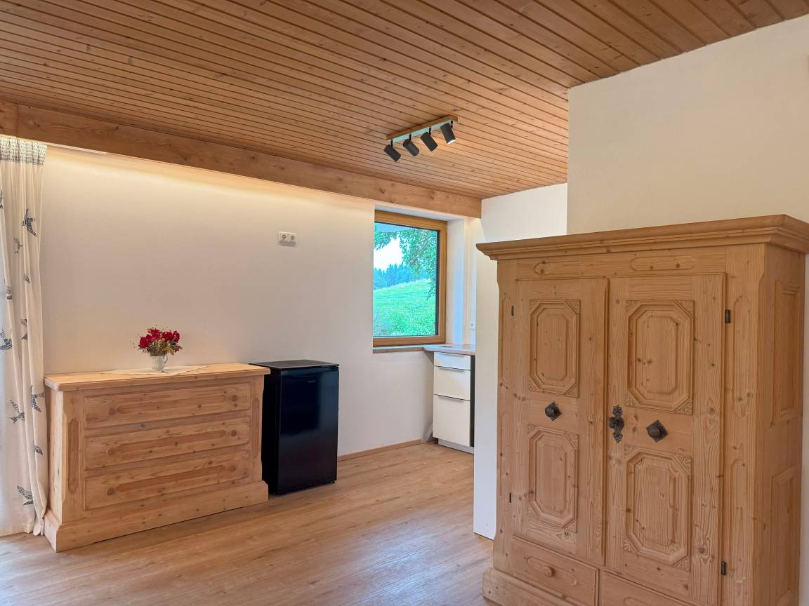 The appartement ist located with a nice view in the ammergau alps. Squirrels jump their way in the trees, there's red kites in the sky and with a bit of luck you can see roe deer in the fields. Directy behind the house you can go biking or make a walk to the UNESCO World heritage "Wieskirche".