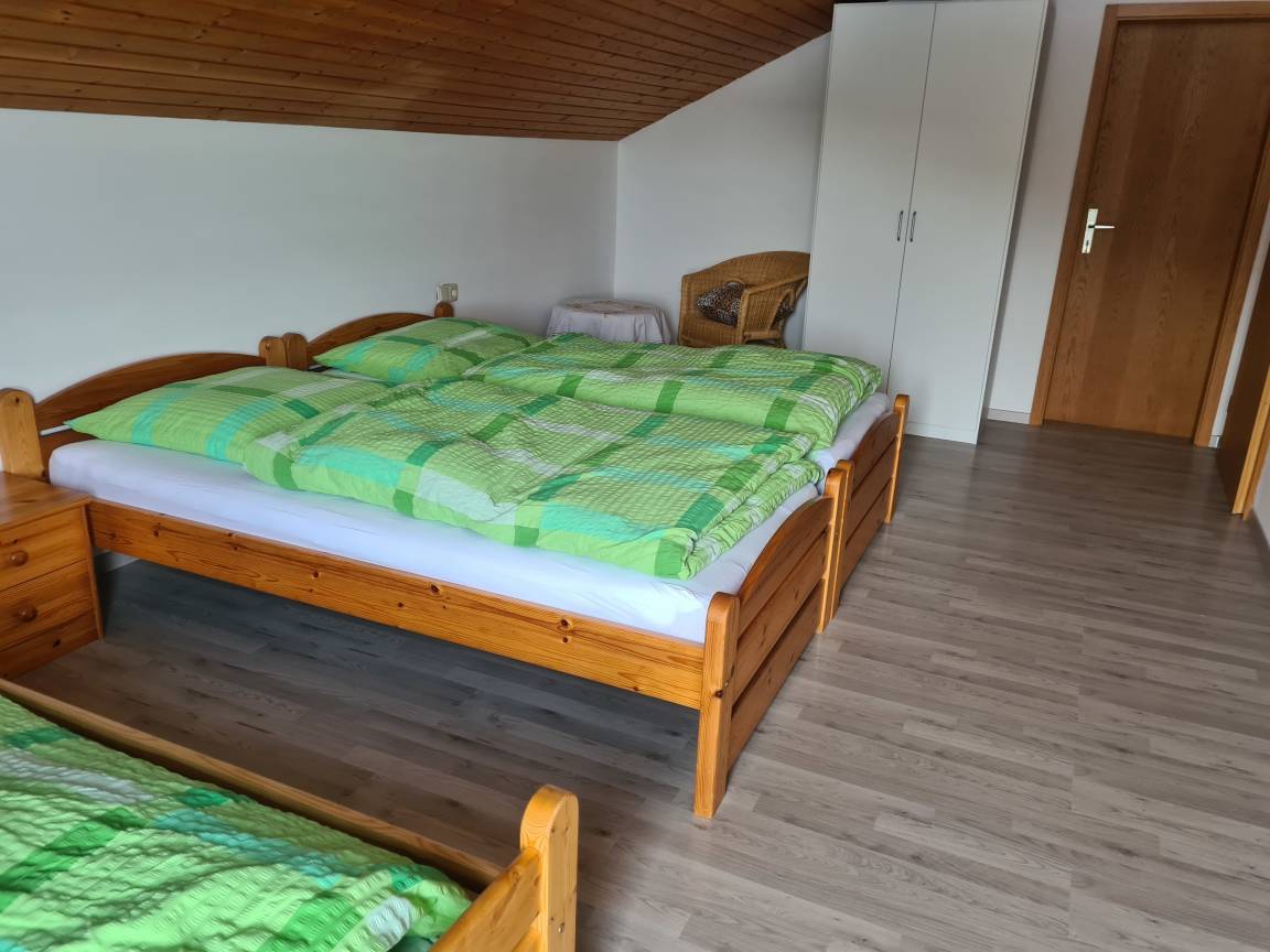 Ferienwohnung im 1. Stock im Nebenhaus eines Bauernhofes. 1 Dreibettzimmer, 1 Zweibettzimmer, Bad/WC, Wohnküche mit TV. Balkon, Liegewiese. Ruhige Aussichtslage direkt am Deutensee (Bademöglichkeit). 6 km zum Ortszentrum. Haustiere dürfen leider nicht mitkommen.