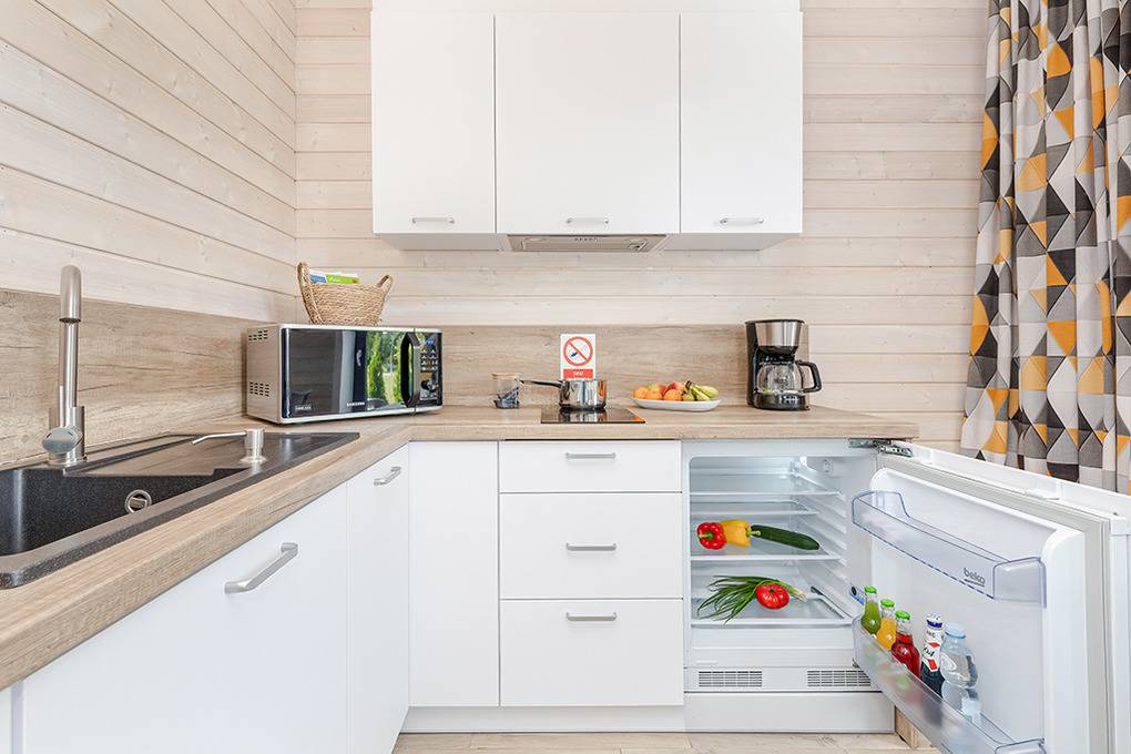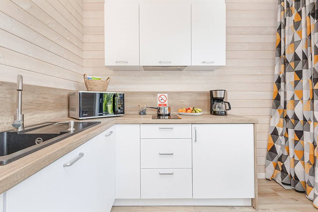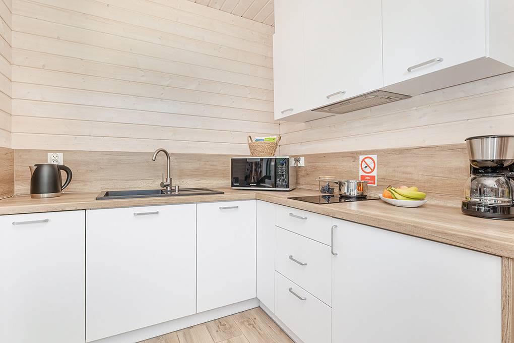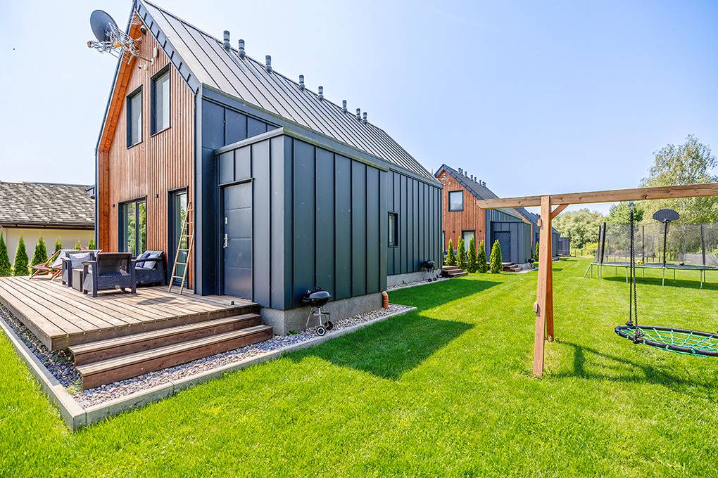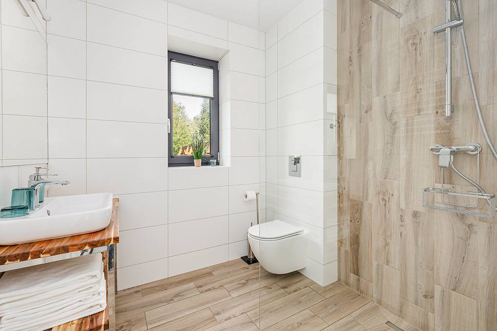PL 20.60 Ferienhaus 1-6 Pers.: Helles 3-Zimmerhaus mit ca. 67 qm Wohnfläche über 2 Etagen. Parterre: Wohn-/Essraum mit Sofa (Ausziehcouch 2 Pers.), Flachbild SMART-TV mit deutschen Programmen (Sat-TV), großem Esstisch, gut ausgestatteter Küchenzeile (Induktionsherd 2-Platten, Abzugshaube, Mikrowelle, Spülmaschine). Modernes Bad mit ebenerdiger Dusche, Wb, WC. Von Wohnzimmer Treppe in die 1. Etage: Doppelzimmer, Zweibettzimmer. Terrasse mit Sitzmöbeln, Grill, Blick auf den davorliegenden Garten.