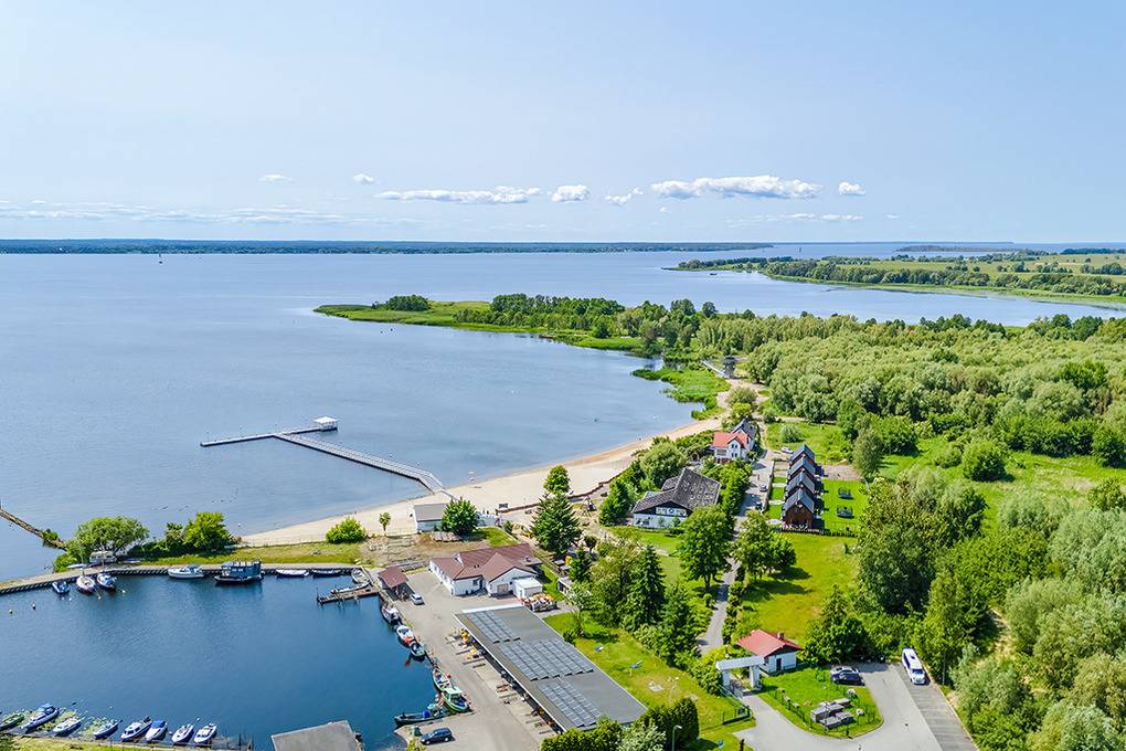 45 km von Misdroy entfernt. Idyllische, ruhige Lage nur 130 m zum feinsandigen, bewachten Badestrand am Stettiner Haff mit weitläufig flachem Wasser, ideal für Familien mit Kindern. Großer öffentlicher Spielplatz mit Klettergerüsten, Wippen, Schaukeln, Seilbahn, Beachvolleyball-Feld 130 m. Streetfood-Truck 130 m (Mai – Sept). Verleih von Strandkörben, SUP, Kajaks, Tret-, Ruderbooten 150 m. Lange Seebrücke mit überdachten Sitzmöglichkeiten im Pavillon 150 m. Restaurant 200 m, Supermarkt 500 m. Aussichtspunkt für Naturliebhaber und (Hobby-) Ornithologen 250 m. Yachthafen mit Charterbooten, Bootsausflügen zu den Brutplätzen der Seeadler, weiterer Natur-& Wildtiertouren 300 m. Marina mit Fischereihafen, Promenade 400 m. Seehafen 600 m. Stepnica mit Cafes, Fachwerkkirche St Hyazinth 600 m. Zum Restaurant umgebaute alte Fachwerkhalle 300 m.