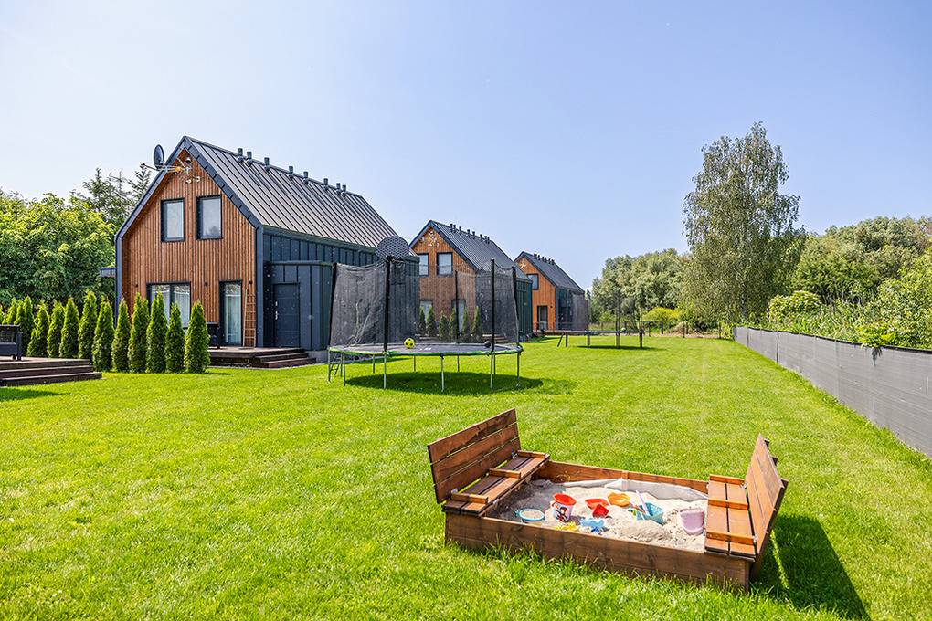 Haus: Schöne Ferienhausanlage mit sechs komfortablen Doppelhaushälften auf einem umzäunten Grundstück. Nichtraucherhäuser. Freundliche, moderne Einrichtung mit viel Liebe zum Detail. Kostenloses Internet über W-Lan. Spülmaschine. Fußbodenheizung im Parterre, E-Heizung im Obergeschoß. Warmwasser über Durchlauferhitzer mit Boiler (80 l). Zwei Terrassen mit Sitzmöbeln, Grill. Spielplatz mit Sandkasten, Klettergerüst, Rutsche, Schaukeln, Trampolin zur gemeinschaftlichen Nutzung. 2-3 Pkw-Stellplätze/Haus im Mietpreis inklusive.