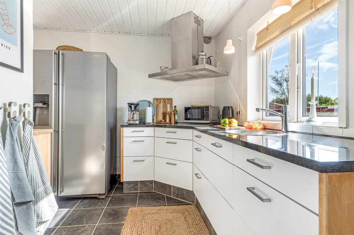 Du findest dieses schöne Haus in der Nähe vom Hafen in Østerby. Das Haus wurde u. a. mit Badezimmer, Küche, neuem Dach und Solaranlage renoviert. Im Gästehaus findest du sowohl ein Badezimmer als auch eine kleine Küche. Darüber hinaus gibt es ein weiteres Gästehaus mit einem großen Schlafzimmer.