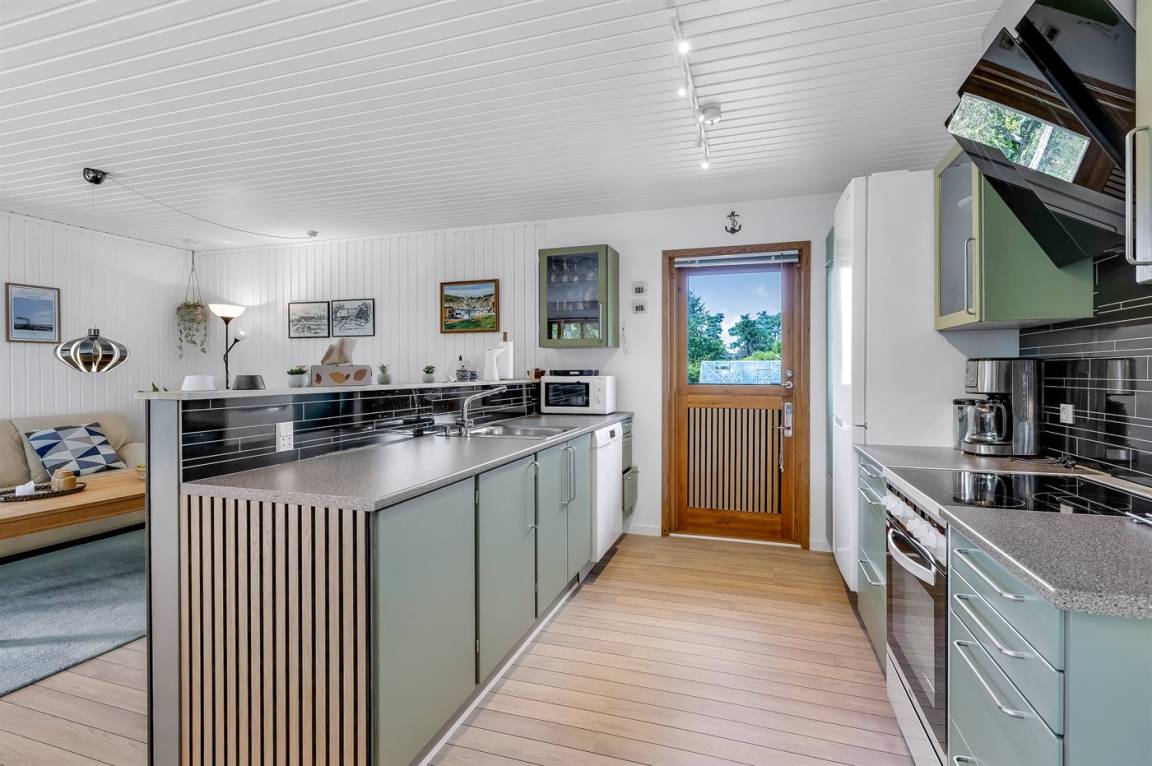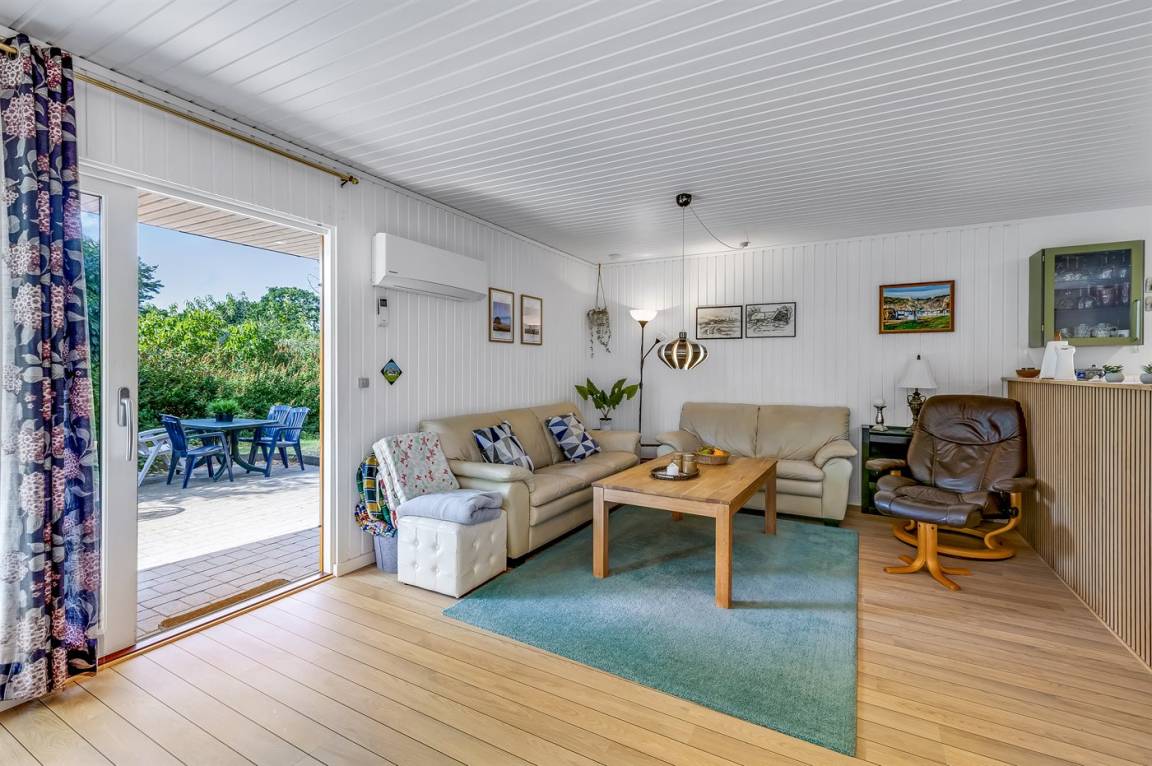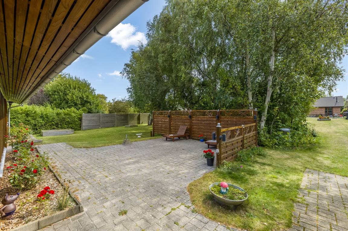Das Ferienhaus liegt auf einem großen, südlich ausgerichteten Grundstück mit schöner Bepflanzung. Hier kannst du dir schnell das Badehandtuch schnappen und zum Strand bei der Marina gehen, um ein erfrischendes Bad im kühlen Nass zu genießen.