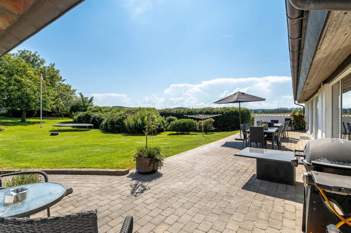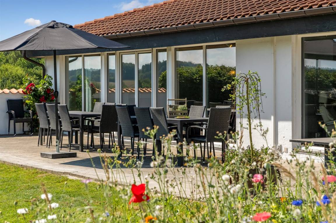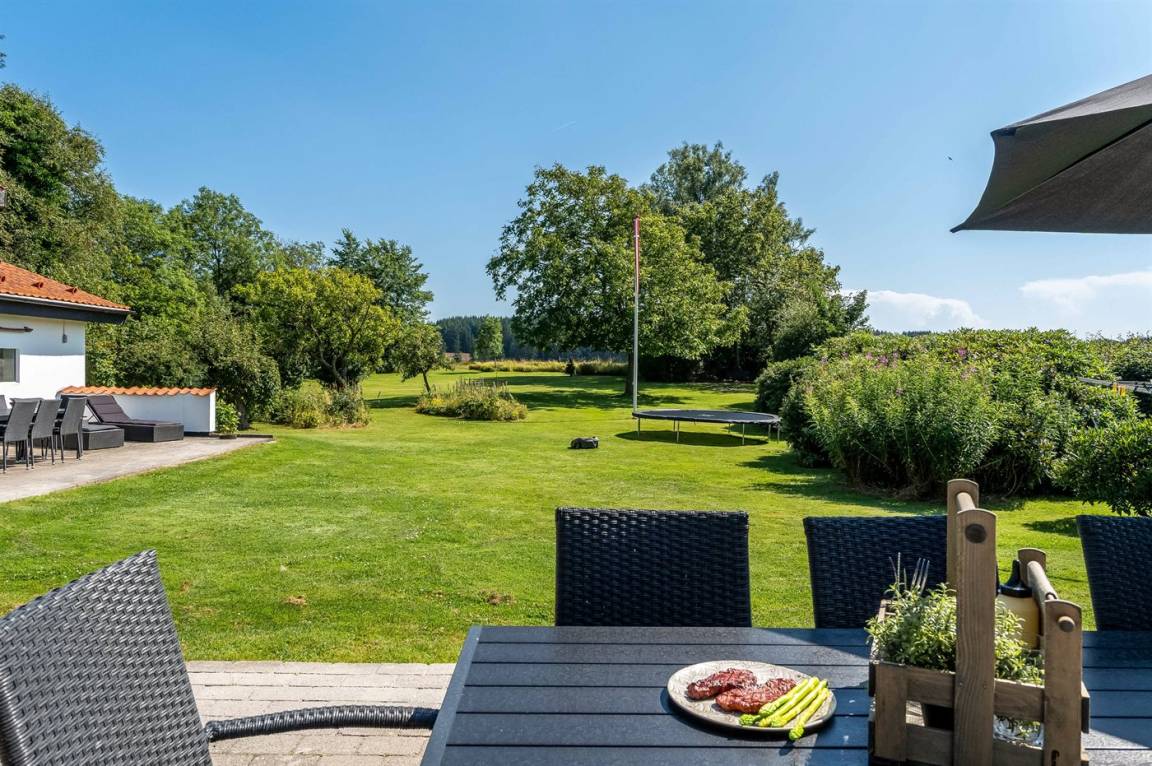 Außenbereich: Große Terrasse mit Grill, Feuerstelle und einer weitläufigen Rasenfläche, die an die Felder rund um das Haus grenzt. Hier findet Ihr ländliche Idylle und zahlreiche Möglichkeiten, Euch auszutoben.