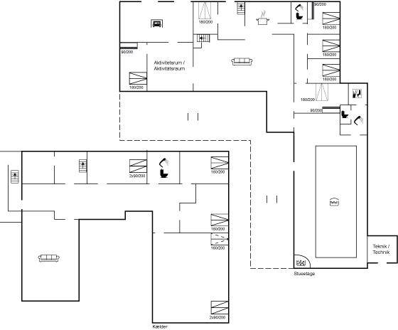 SchlafverhältnisseDie Schlafplätze verteilen sich auf 10 Schlafräume. 16 Schlafplätze in Doppelbetten. 4 Schlafplätze in Einzelbetten. 6 Schlafplätze in Etagenbetten. 2 Schlafplätze auf einer Doppelschlafcouch. Ferner stehen 2 Kinderbetten zur Verfügung.