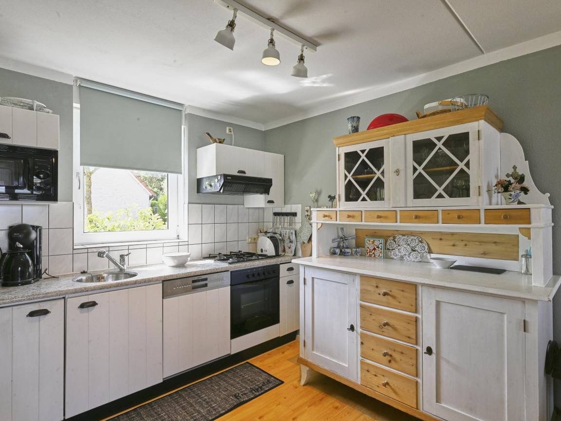 Layout : Parterre: Küche mit Wasserkocher, Toaster, Kochherd(4 Kochplatten, Gas), Kaffeemaschine(Filter, senseo pads), Backofen, Mikrowelle, Geschirrspüler, Kühl-/Gefrierkombination , Wohn/Esszimmer mit TV , Badezimmer mit Dusche, Waschbecken, Toilette , Wirtschaftsraum