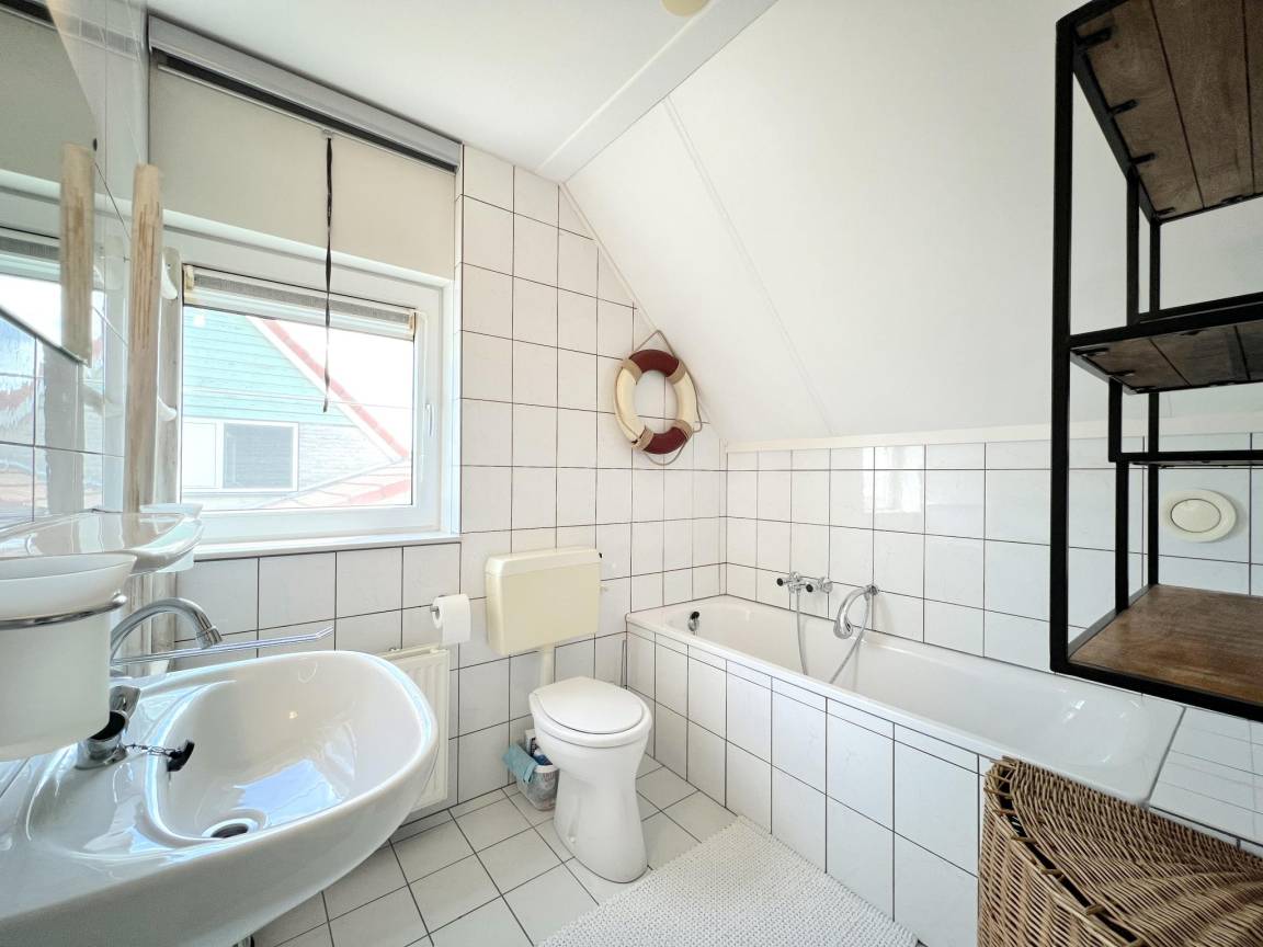 In der 1. Etage: Schlafzimmer mit Doppelbett , Schlafzimmer mit 2x Einzelbett , Badezimmer mit Badewanne, Waschbecken, Toilette