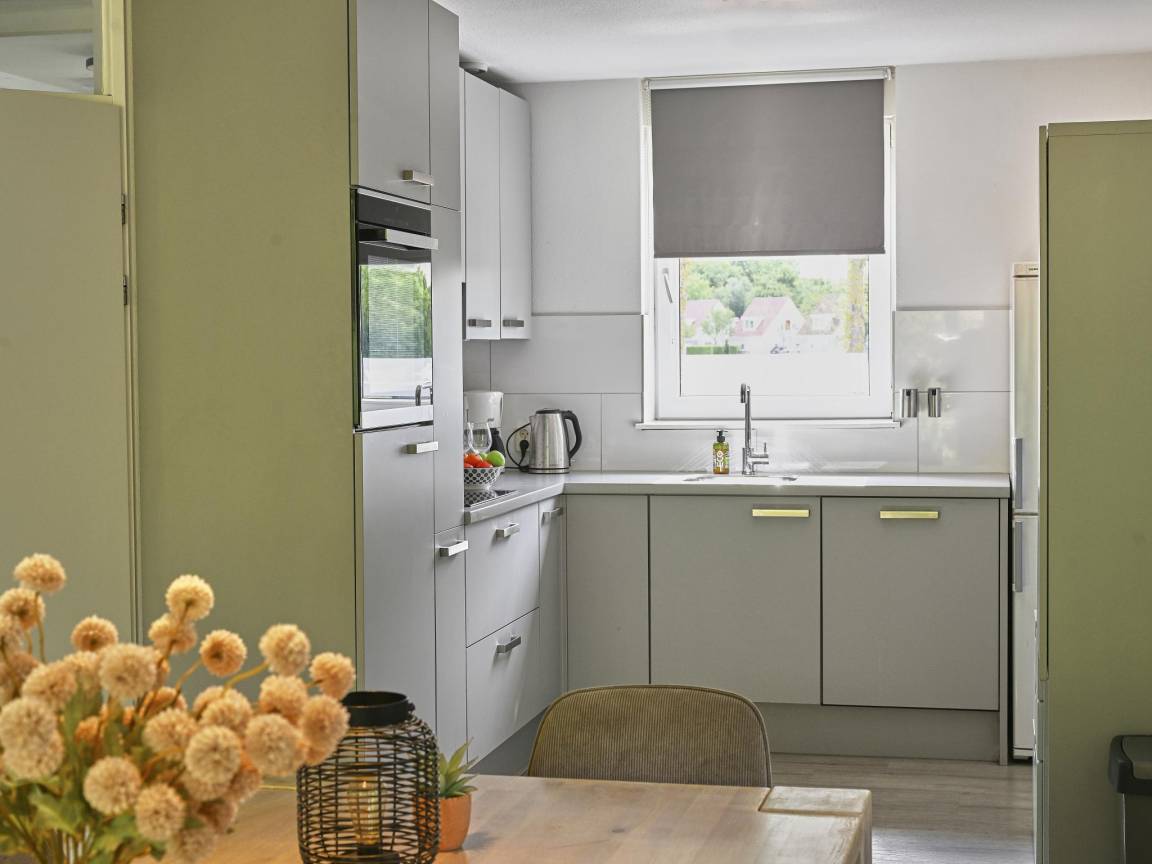 Layout : Parterre: Küche mit Wasserkocher, Kaffeemaschine(pads), Kombi-Mikrowelle, Geschirrspüler, Kühlschrank, Tiefkühlschrank, Kühl-/Gefrierkombination , Wohn/Esszimmer mit TV(digital) , Badezimmer mit Dusche, Waschbecken, Toilette