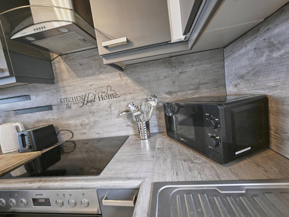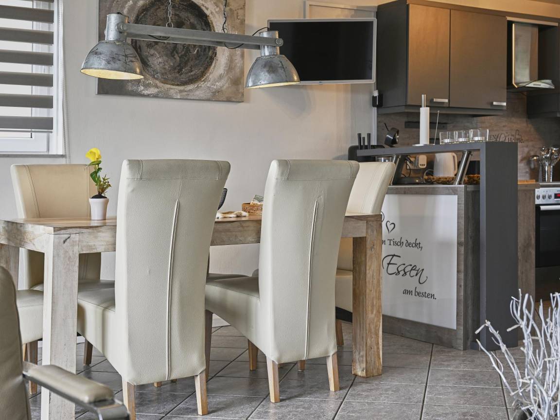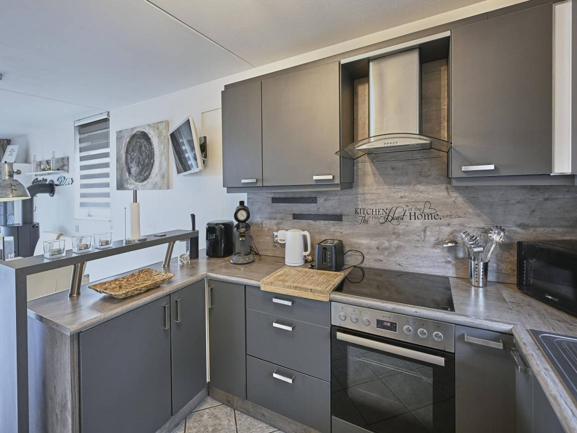 Layout : Parterre: offene Küche mit TV, Kochplatte(4 Kochplatten, elektrisch), Wasserkocher, Toaster, Dunstabzugshaube, Kaffeemaschine(senseo pads), Backofen, Mikrowelle, Geschirrspüler, Kühl-/Gefrierkombination , Wohn/Esszimmer mit TV(smart TV), Ofen(Holz), Sitzecke , Toilette mit Toilette , Abstellraum mit Waschmaschine