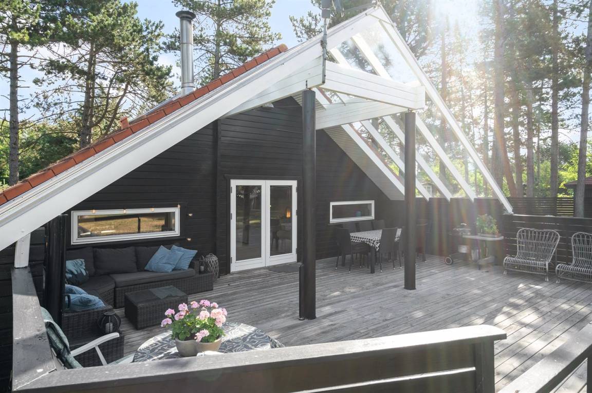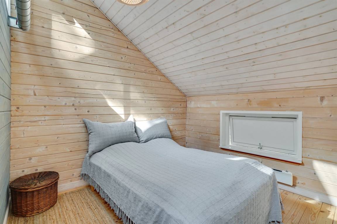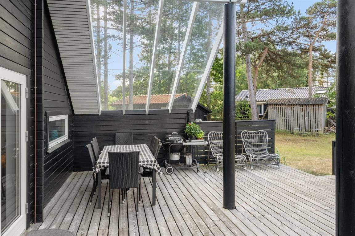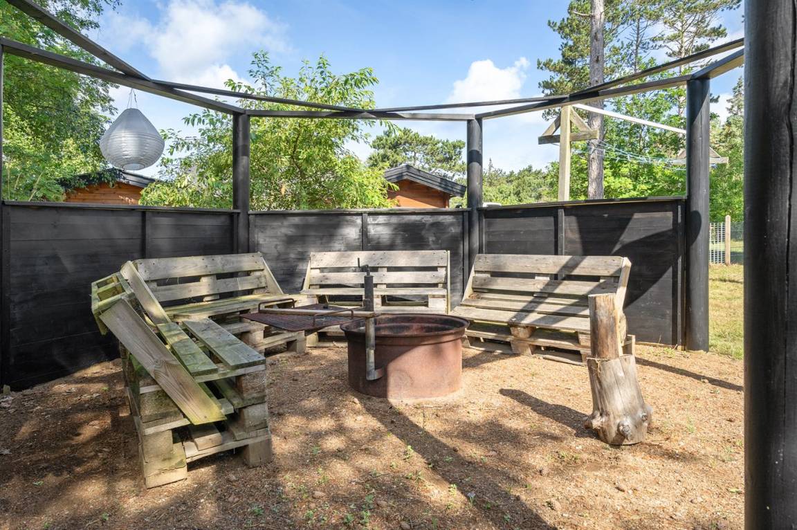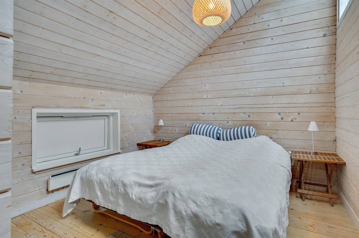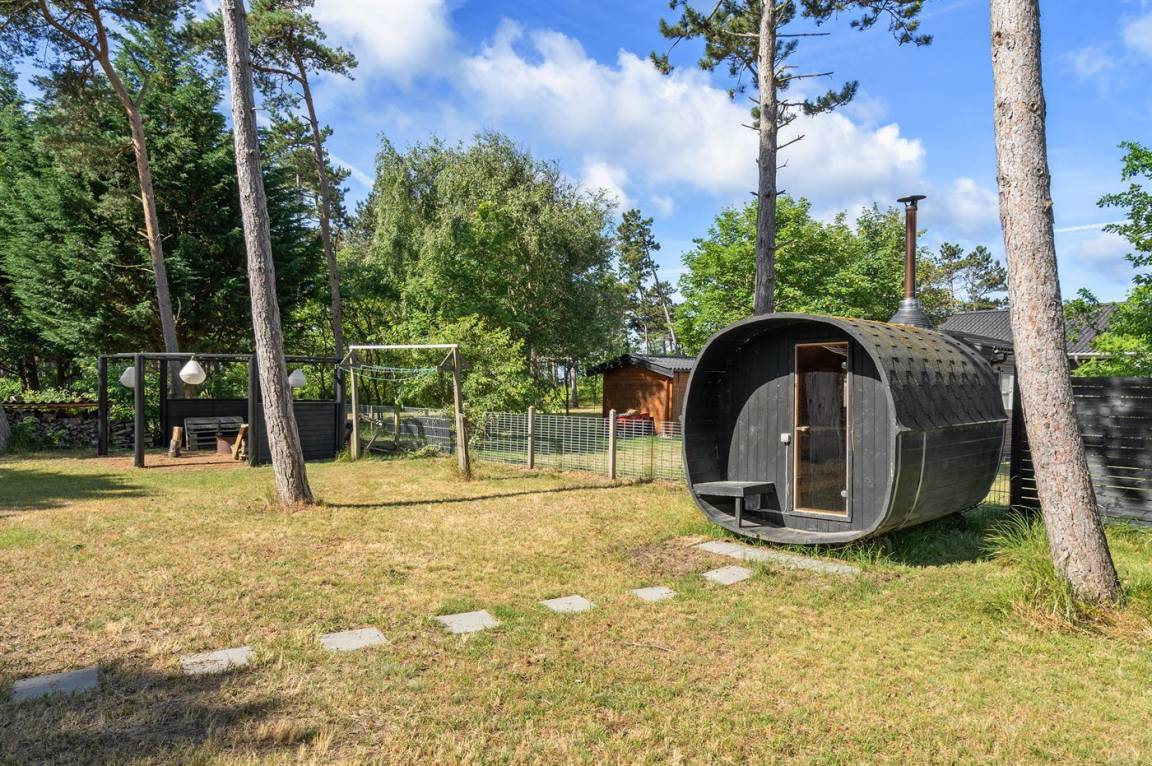 Dicht an einem kinderfreundlichen Badestrand, in einer ruhigen Ferienhaussiedlung, finden Sie dieses Ferienhaus auf einem Grundstück mit hohen Bäumen. Das Haus ist mit einem offenen Obergeschoss mit 2 Matratzen eingerichtet.